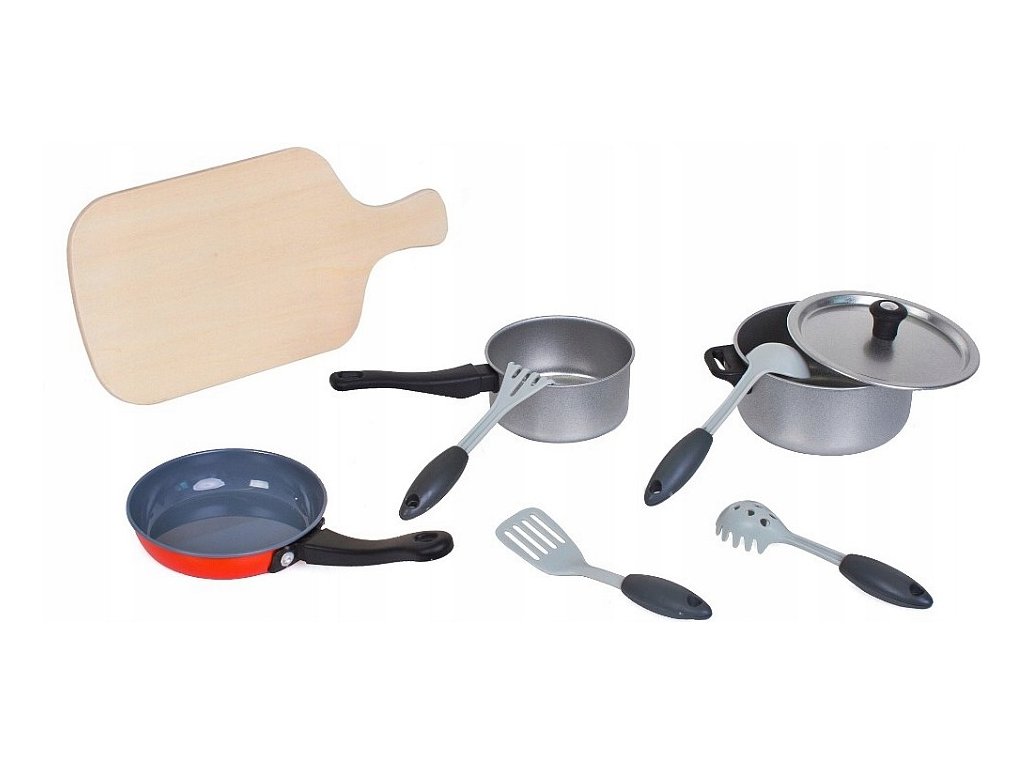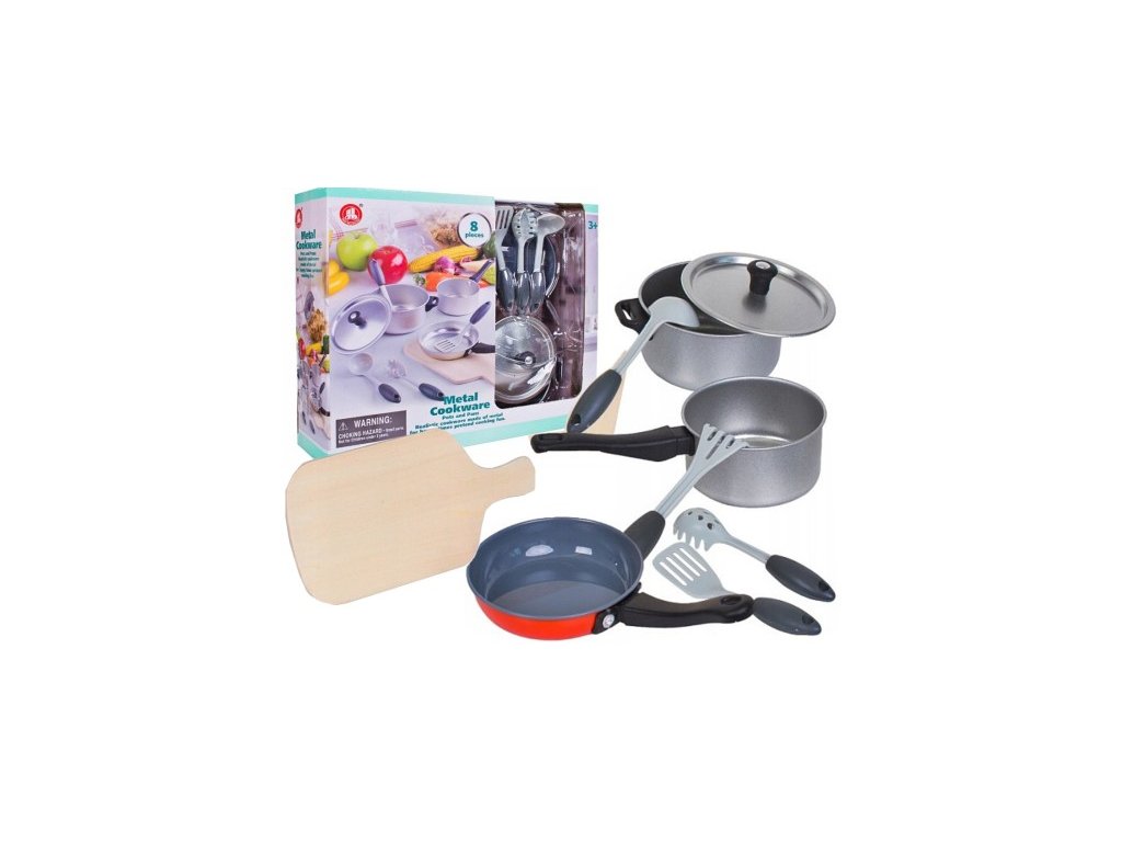 Detská sada hrncov bude užitočná v každej domácej kuchyni malého kuchára. Ideálne sa hodí na varenie večere pre bábiky a medvedíkmi. Produkt rozvíja predstavivosť a manuálne zručnosti a zaistí veľa zábavy. Kovové hrnce sú veľmi pekné a esteticky vyrobené. Brilantne napodobňujú skutočné kuchynské hrnca.