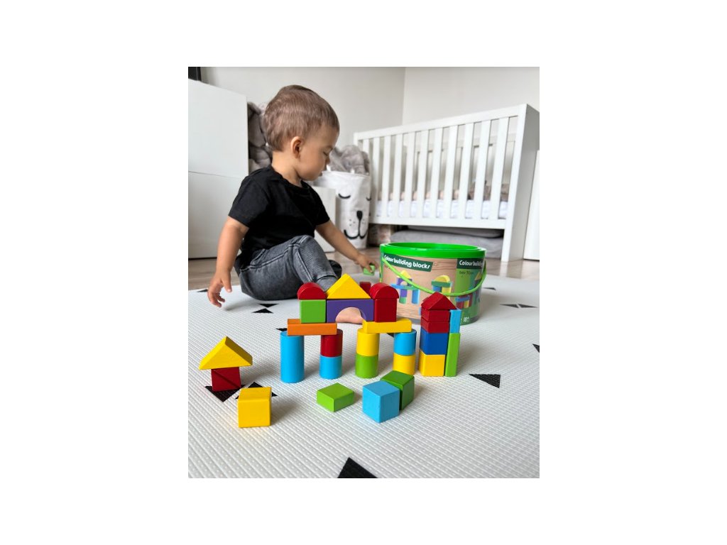 Sada 50 dielov , ktoré predstavujeme, bola vyrobená z vysoko kvalitného dreva, bloky sú hladké, neobsahujú žiadne ostré prvky a sú pokryté bezpečnými, netoxickými farbami.
