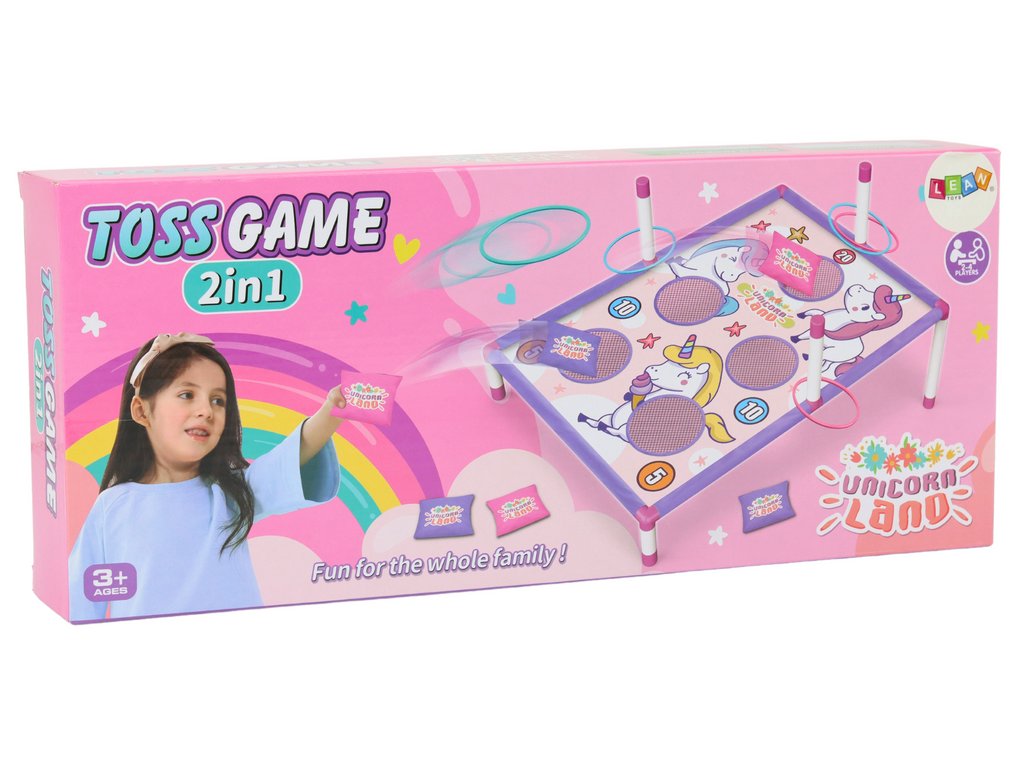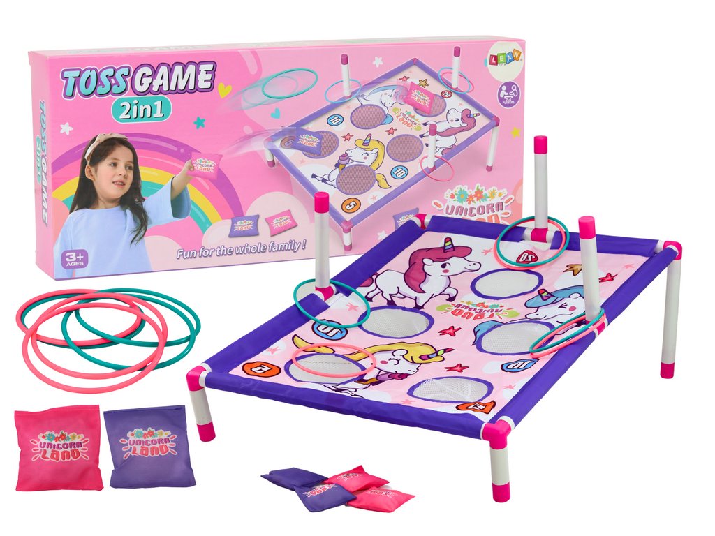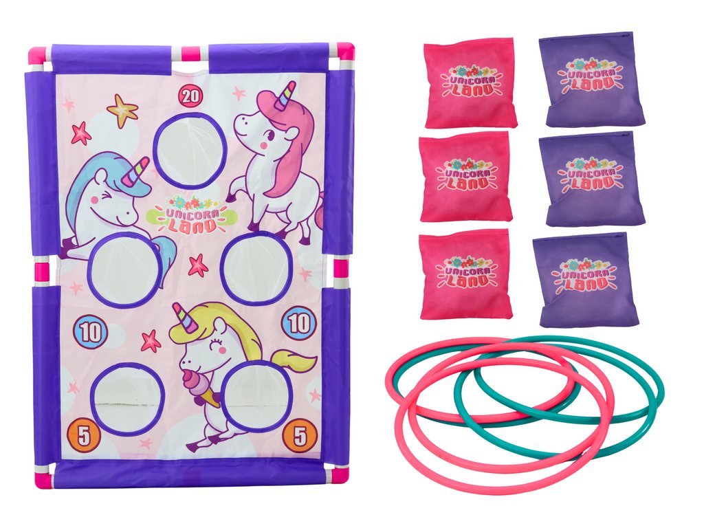 Hry na zručnosti hádzanie krúžky a vrecká 2v1 Jednorožce