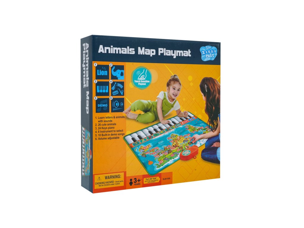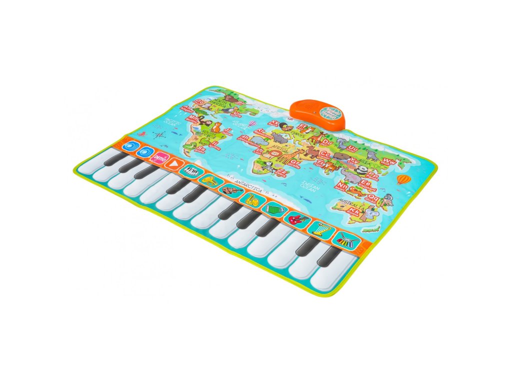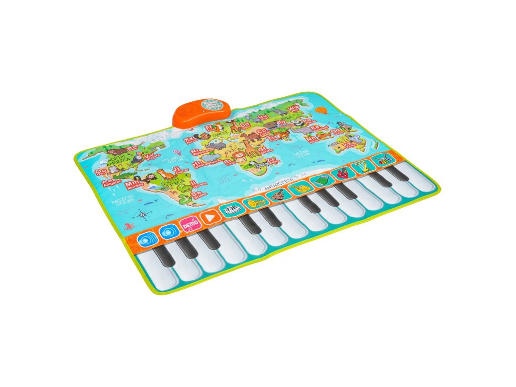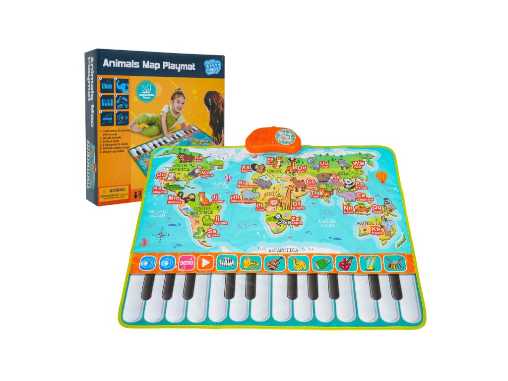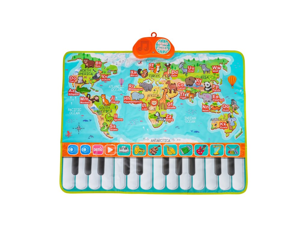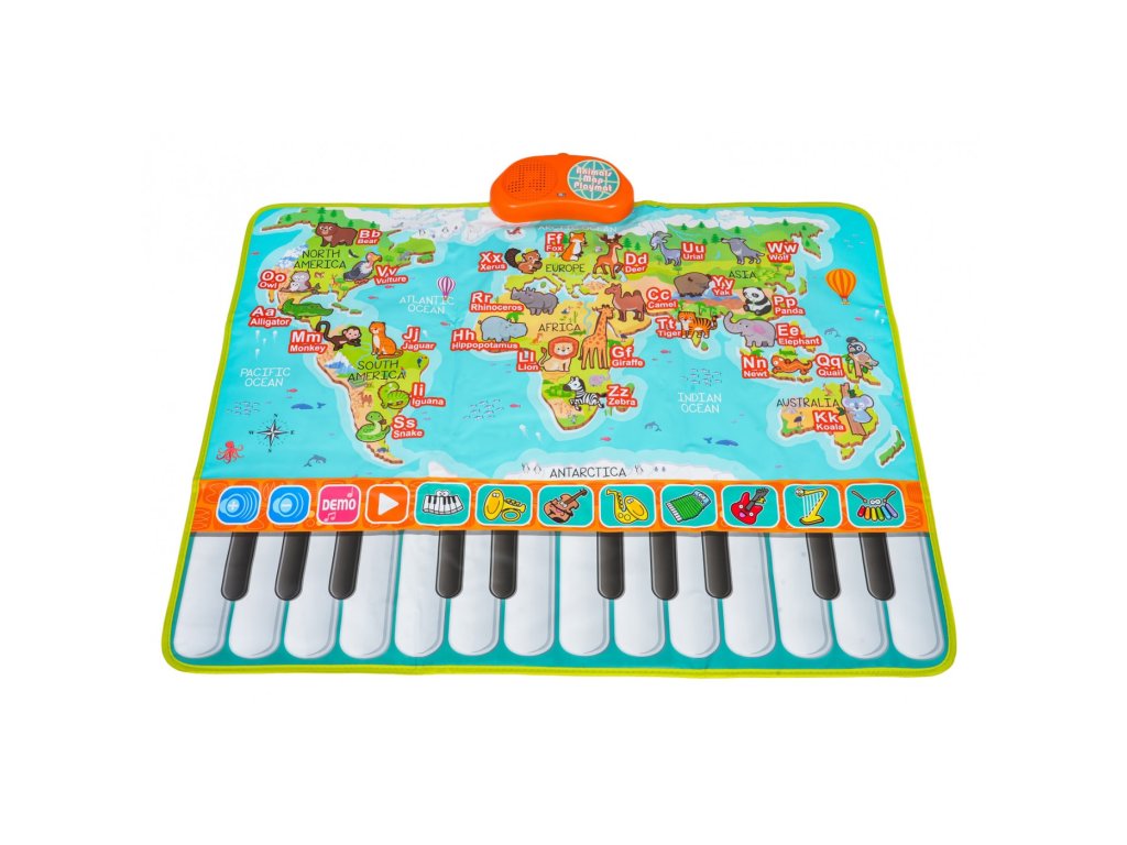 Táto farebná hudobná podložka je ideálna pre deti od 3 rokov a prepája hravú zábavu s učením. Vďaka klávesám, zvieratkám a písmenkám na ploche podložky dieťa spozná až 26 zvierat a písmen anglickej abecedy. Po stlačení príslušného obrázku zaznie názov zvieratka alebo výslovnosť písmena. Okrem toho podložka ponúka 24 klávesov pre vlastné hranie, 10 prednastavených melódií aj možnosť vyskúšať si 8 hudobných nástrojov.