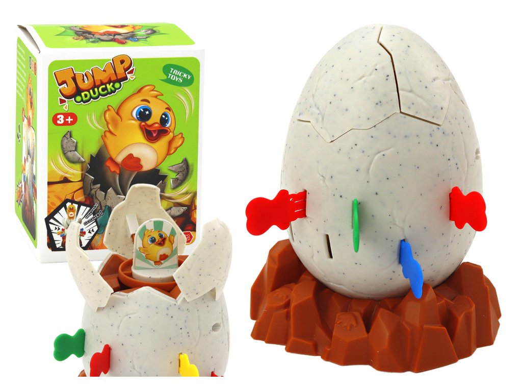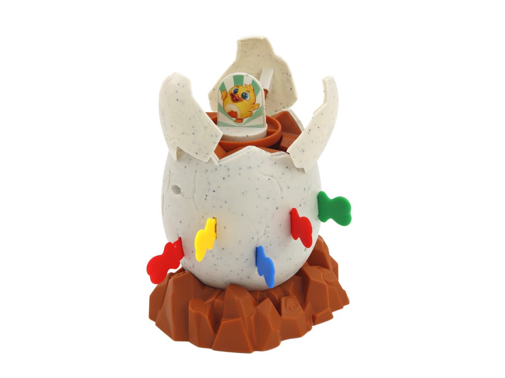 Vajíčko umiestnime na priložený hnedý stojan, potom vložíme kuriatko do vajíčka. V tejto chvíli môžeme začať zábavu a opatrne zasúvať tyčinky okolo neho. To sa zdá ako jednoduchý proces, ale teraz sa pripravte na ten najzábavnejší moment – keď hráč umiestni tyčinku na správne miesto, kura náhle vyskočí z vajíčka! Tento okamih rozosmeje každého a vyvolá vlny smiechu.