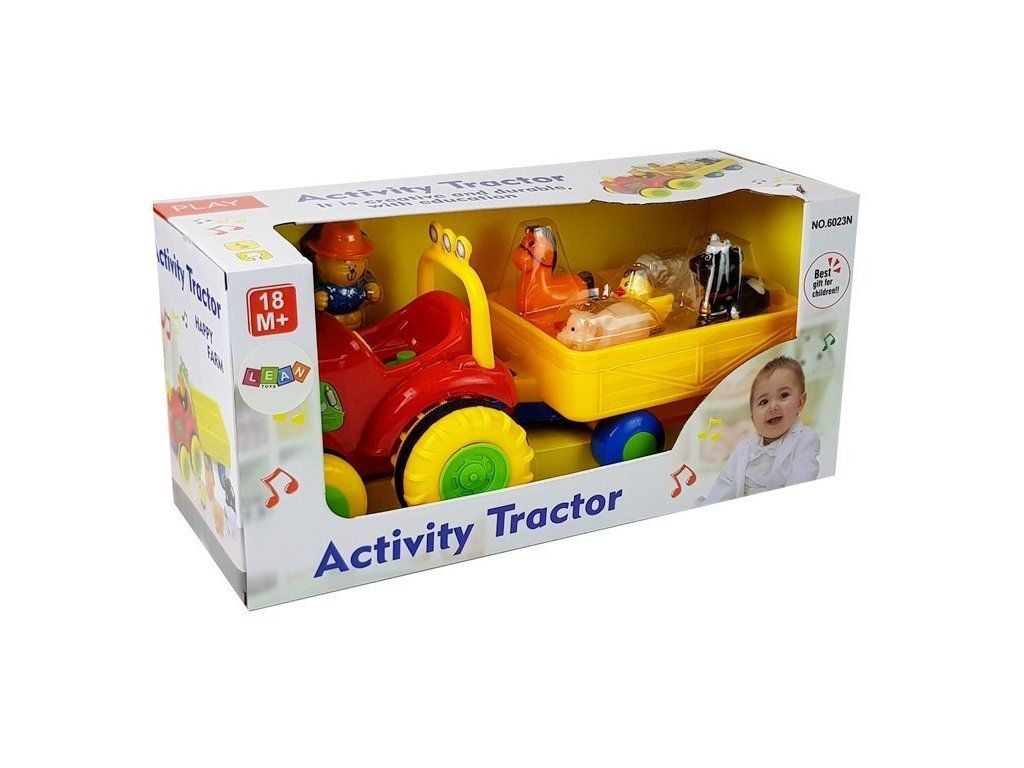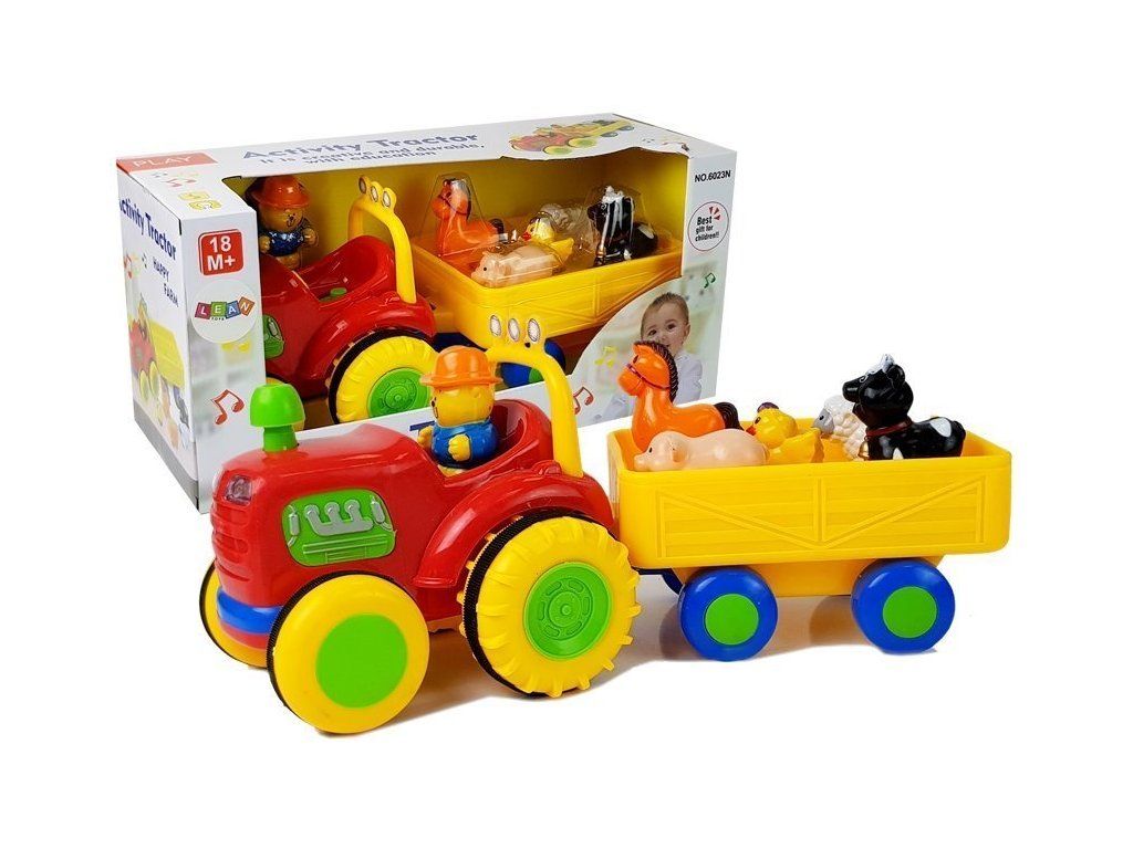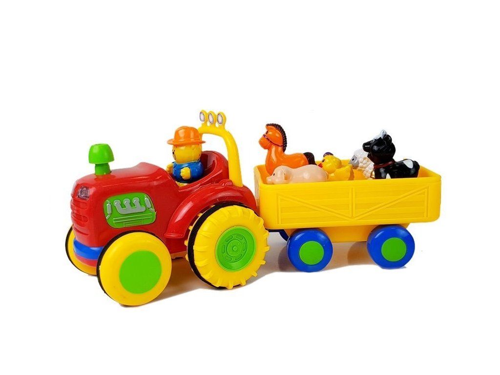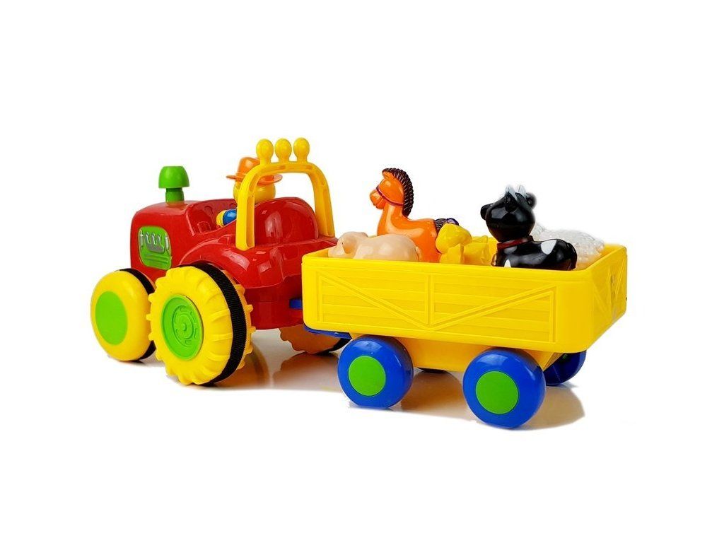 Interaktívny traktor s prívesom pre najmenších prinesie deťom veľa zábavy. Na traktore sa nachádza komín, ktorý keď stlačíte ide vpred a vydáva zvuky motora a zvuk húkačky. Hračka je vyrobená z najkvalitnejšieho plastu, vďaka ktorému je veľmi pevná a odolná a predovšetkým bezpečná na použitie.