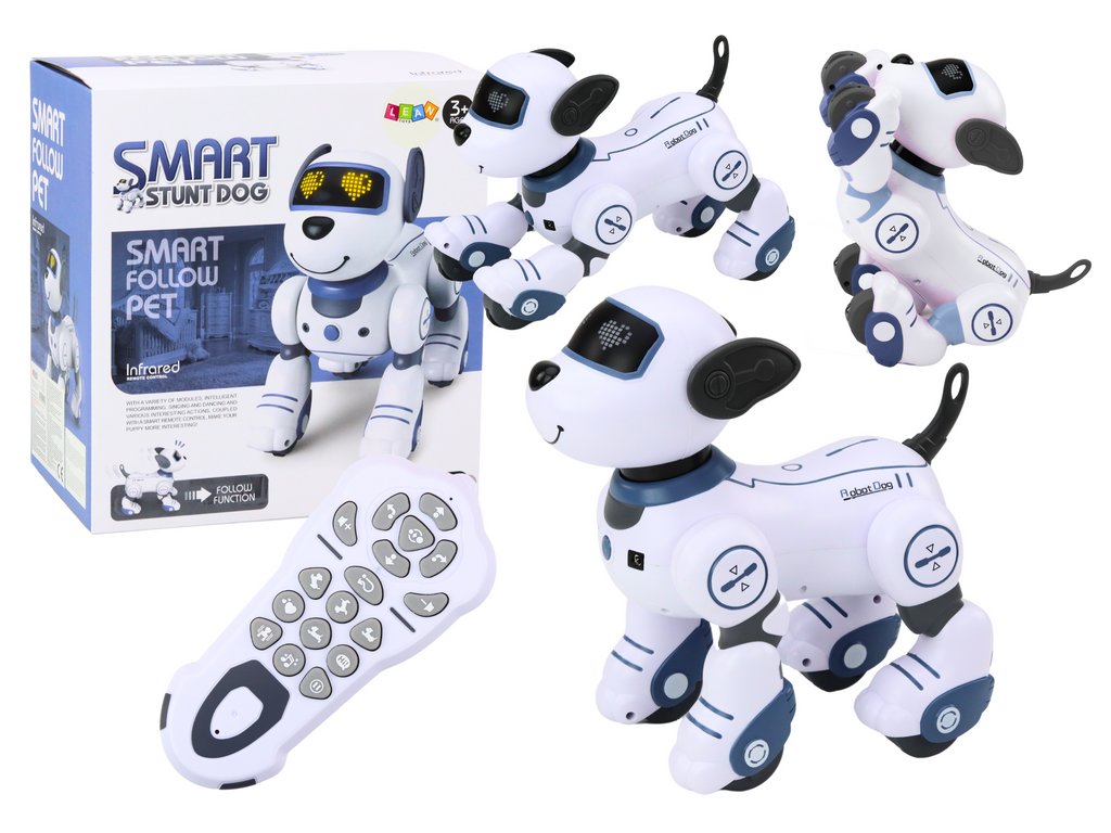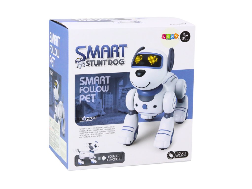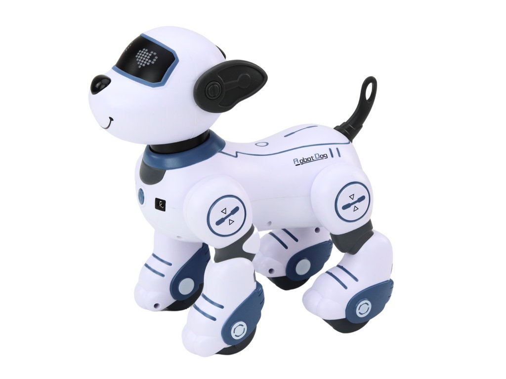 Interaktívny robotický pes na diaľkové ovládanie tancuje a plní príkazy modrý