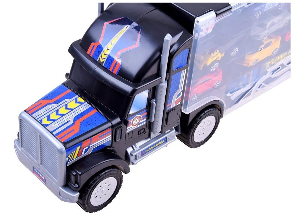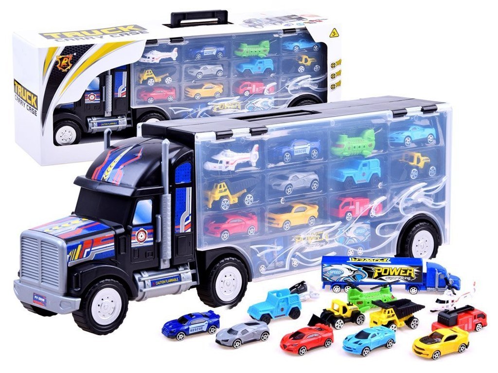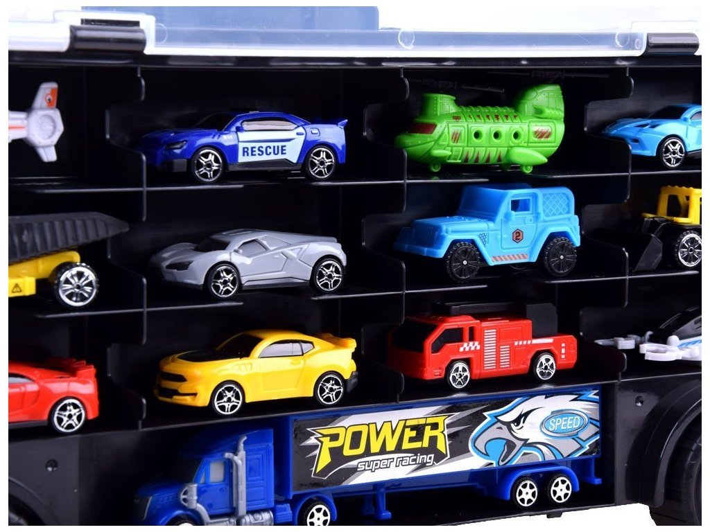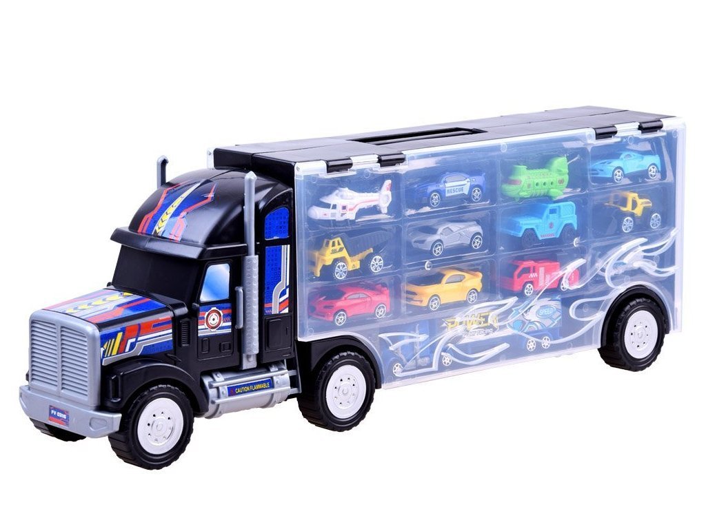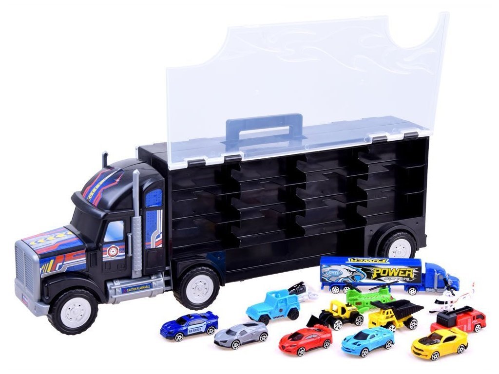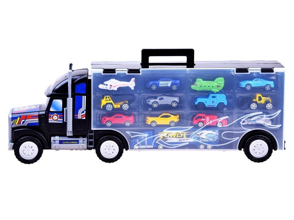 Veľké nákladné auto s autíčkami je skvelým nápadom pre každého zberateľa malých áut. Nákladné auto s návesom vám umožní usporiadať vašu zbierku tak, aby sa nestratilo žiadne cenné autíčko.