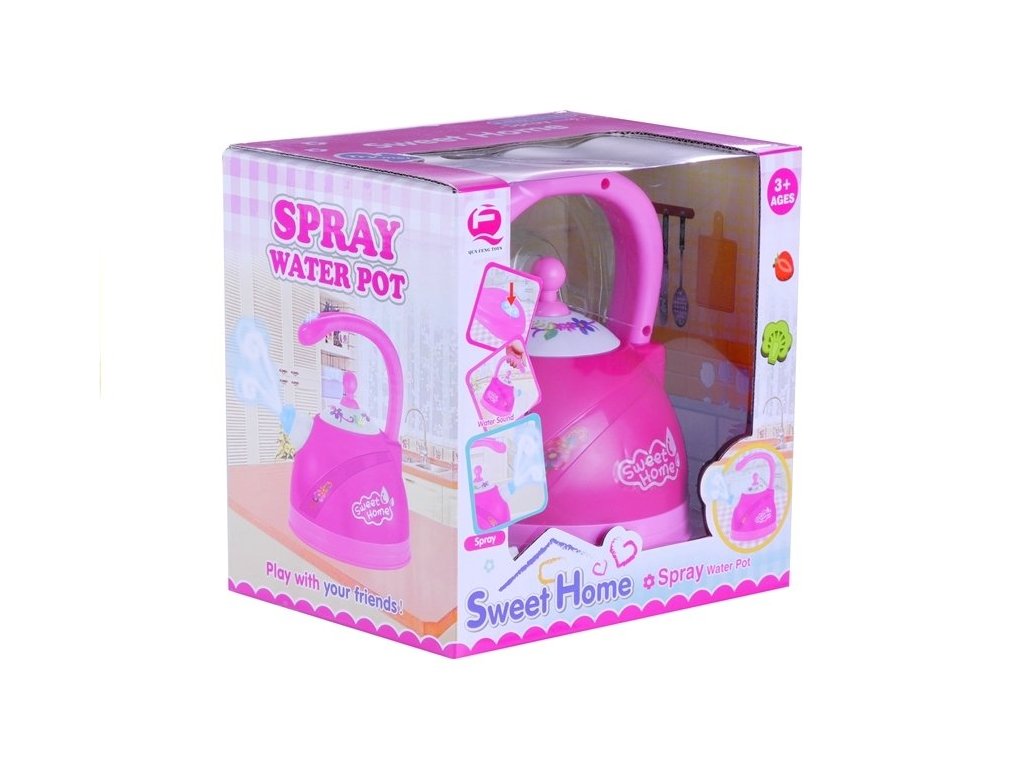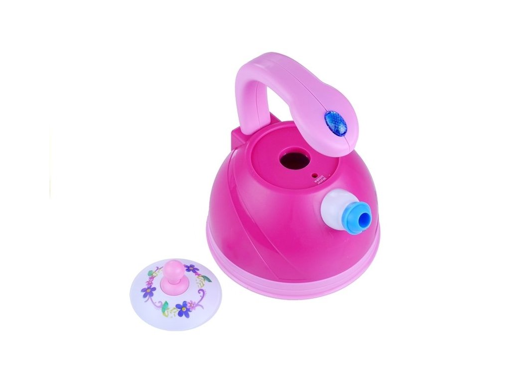 Ružová kanvica na varenie vody má zvukové a svietiace efekty. Po stlačení tlačidla začne kanvica vydávať zvuky pripomínajúce nalievanie vody. Samozrejme sa do kanvice dá naliať voda. Stačí naplniť priloženú nádobu vodou do špeciálneho otvoru pod vekom.