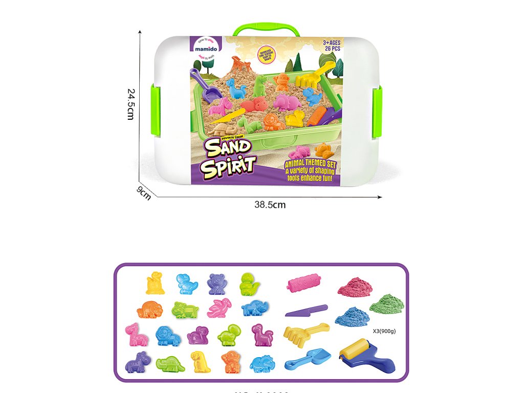 - 3× farebný kinetický piesok (celkom 900 g)