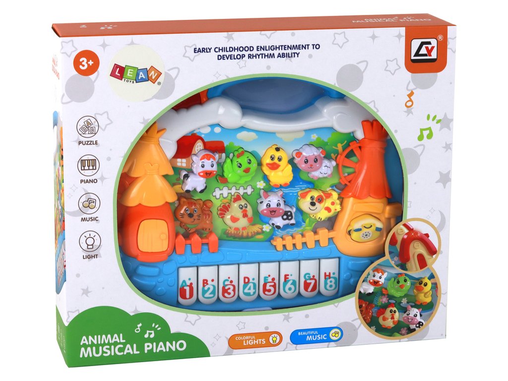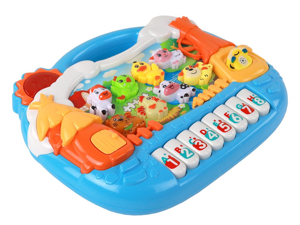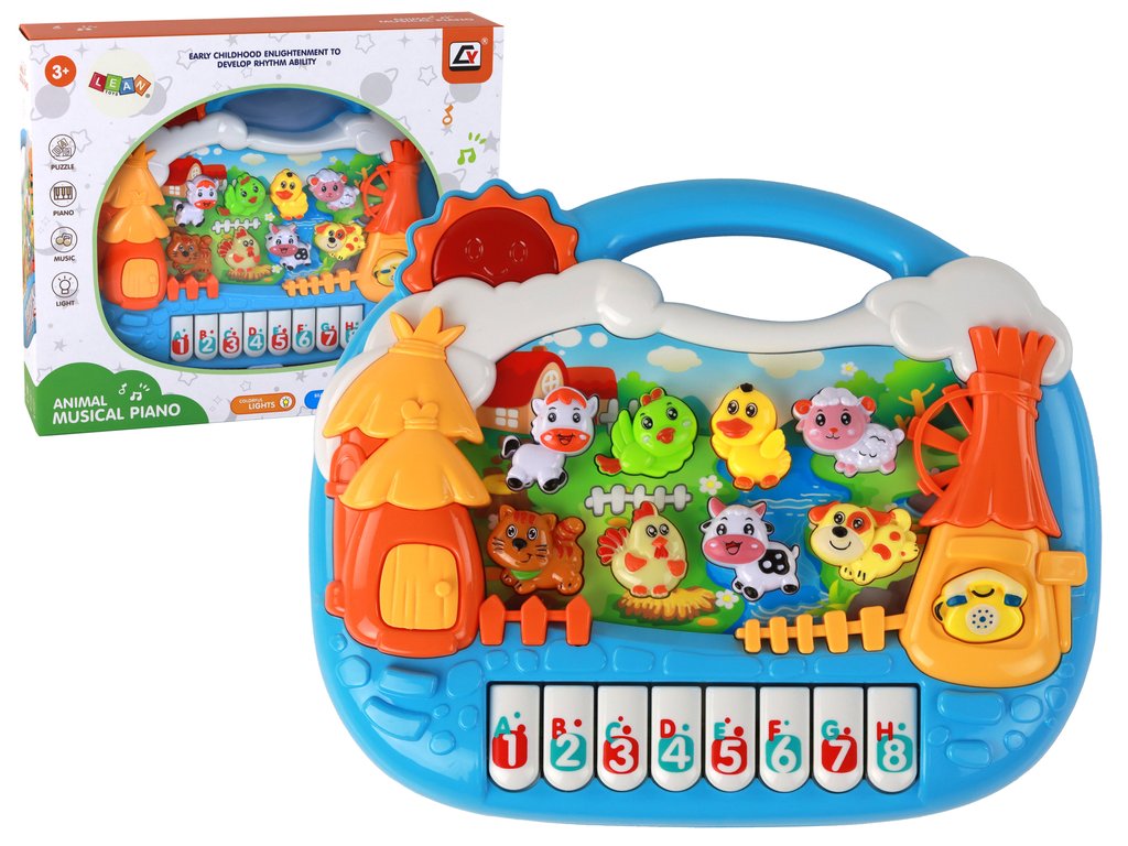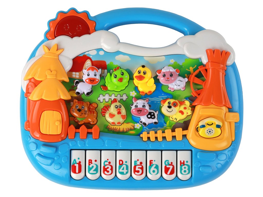 Hudobný panel má klávesy s číslami označenými od A do H, zodpovedajúcimi písmenám abecedy, a od 1 do 8, predstavujúcimi čísla. Vďaka tomu má dieťa príležitosť nielen sa učiť základné písmená a čísla, ale tiež ich prepájať s rôznymi zvukmi a zvieratami charakteristickými pre vidiecky život.