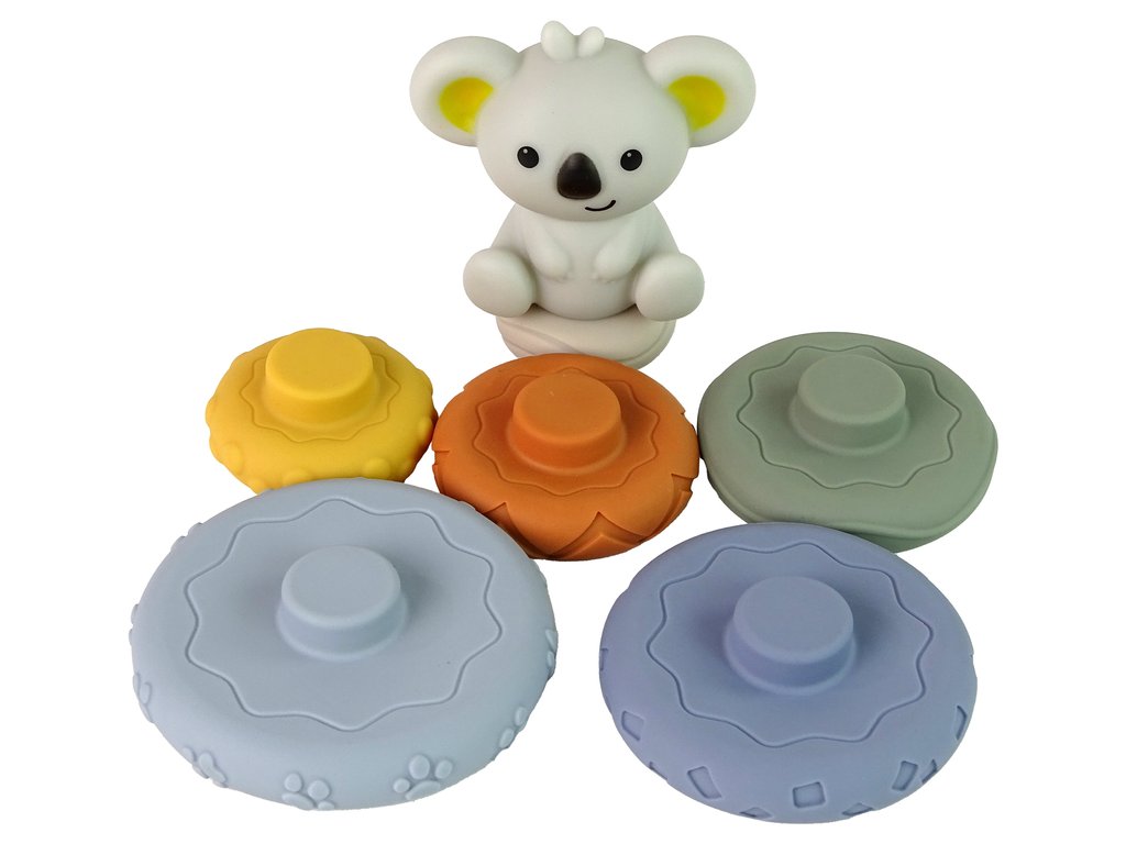 Na vrchole pyramídy je roztomilá koala , ktorá vzbudzuje záujem a podporuje hru. Deti budú rady skúšať otáčať a skladať disky do rôznych konfigurácií, čo rozvíja ich motoriku, koordináciu ruka-oko a logické myslenie.