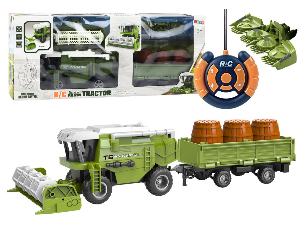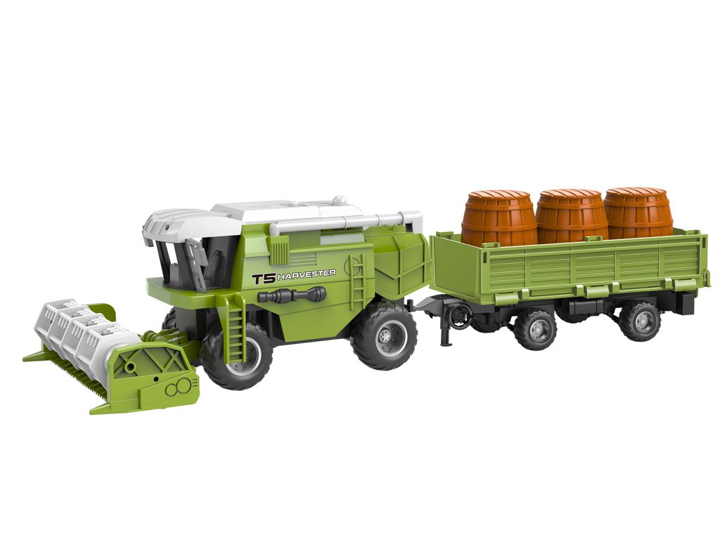 Kombajn poľnohospodársky stroj na obilie RC diaľkovo ovládaný s prívesom zelený