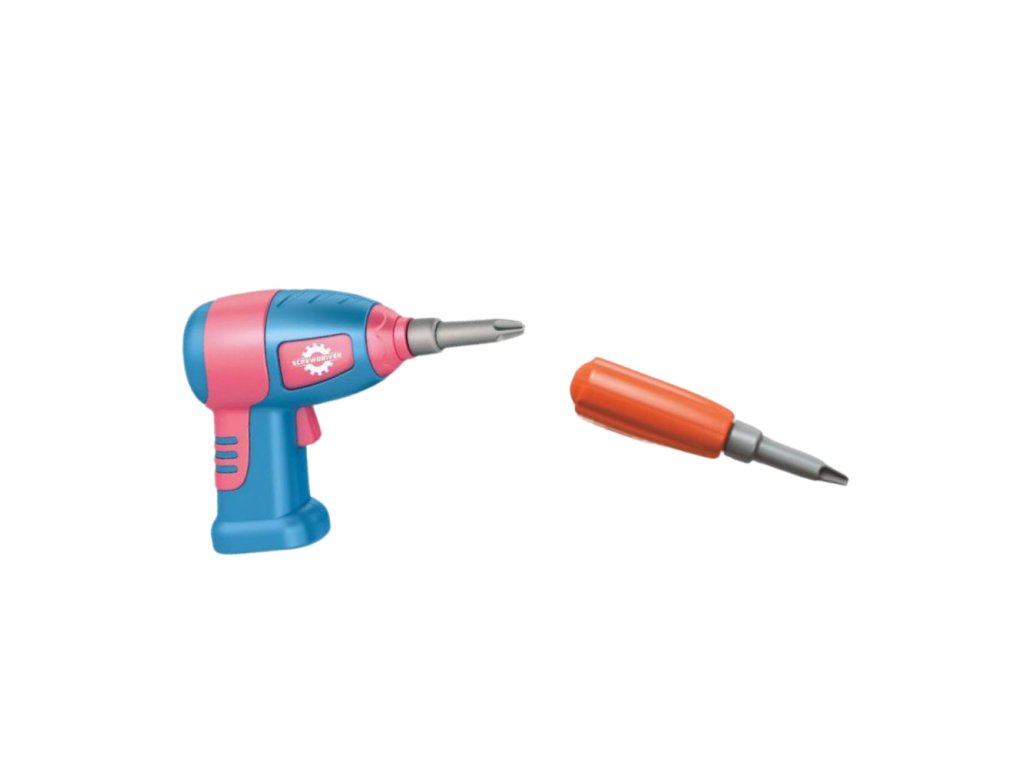 Součástí je funkční dětská vrtačka na baterie s výměnnými bity, šroubky, šroubovák, klíč a množství barevných konstrukčních prvků. Vše přehledně uložené v kufříku s rukojetí, ideálním na cesty i ukládání. Skládání a rozebírání staveb pomáhá dětem rozvíjet jemnou motoriku, kreativitu i logické myšlení.