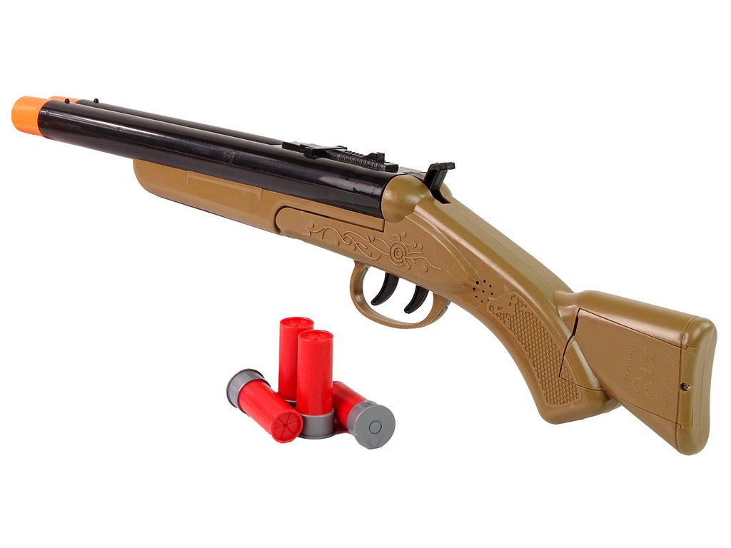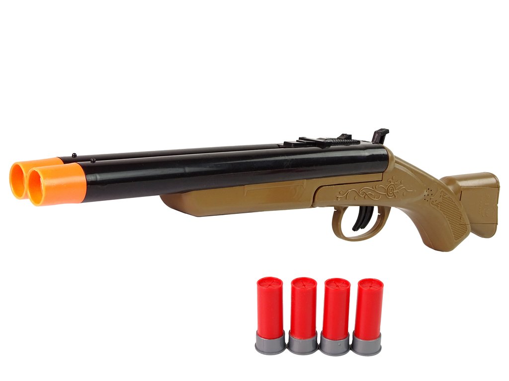 Ďalším plynulým pohybom nahor ju uzavrite a je pripravená na streľbu. Vnútri sú dva otvory na náboje, môžete vystreliť dve rany naraz. Nebudú strieľať súčasne, dve spúšte vám umožnia strieľať jednu po druhej. Brokovnica vydáva iba zvukové efekty, z hlavne nič nevychádza, čo zaručuje bezpečnosť pre vaše dieťa.