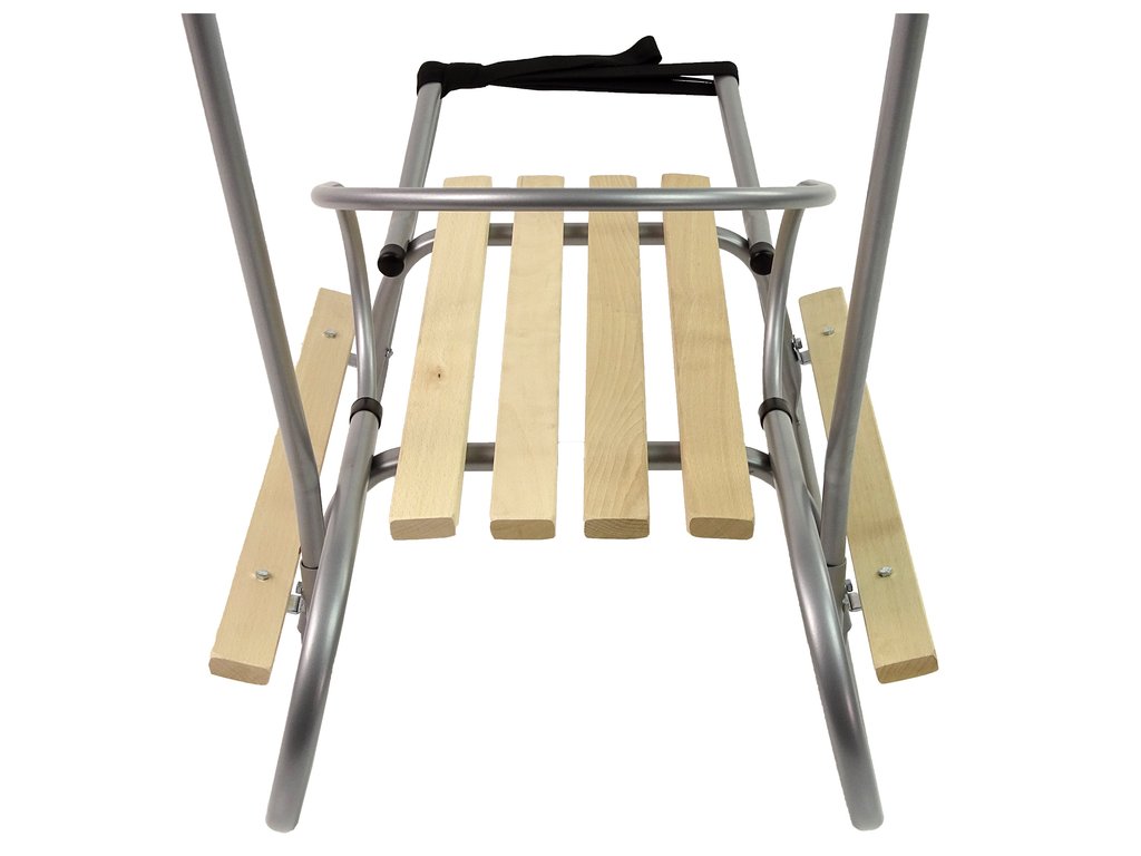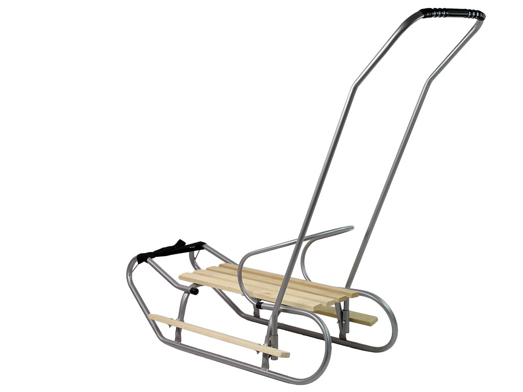 Sánky sú vyrobené z dreva a kovu a preto sú pevné a robustné, ale zároveň pohodlné a nie príliš ťažké. Tlačnú tyč a opierku chrbta je možné ľahko odňať.