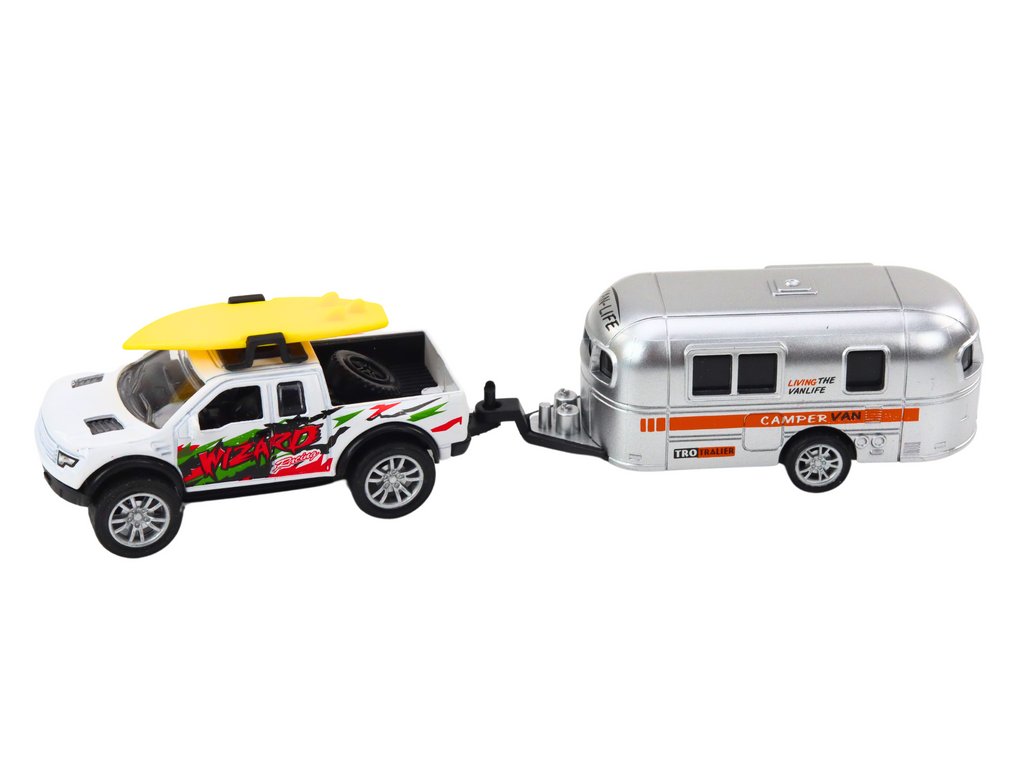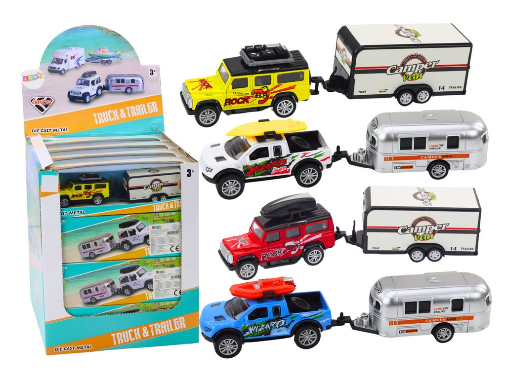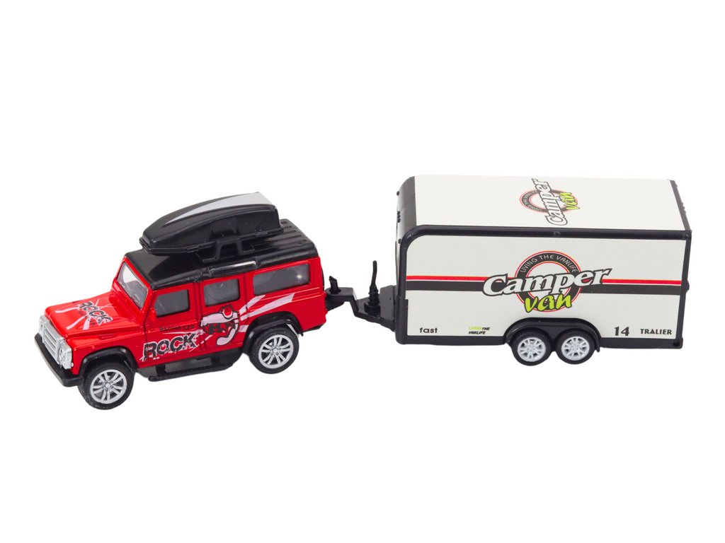 Odolné terénne auto s prívesom karavanu je ideálnou voľbou pre malých dobrodruhov, ktorí milujú výlety. Vďaka frikčnému pohonu sa auto ľahko uvedie do pohybu a karavan pridáva na zábave, čo podporuje kreativitu pri vytváraní cestovateľských scenárov.