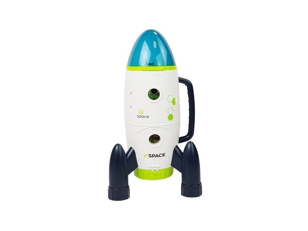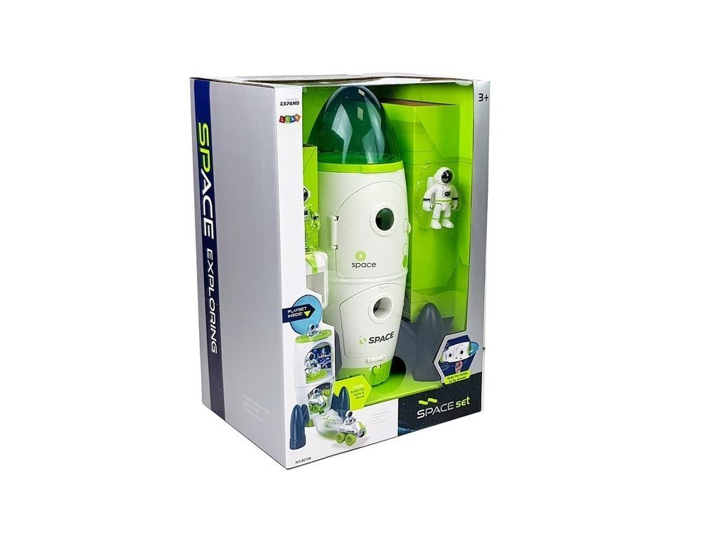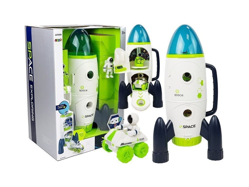 Impozantná raketa – vesmírna stanica je ako druhý domov astronóma a kontrolná stanica. Po otvorení dverí sa nám ukáže jej vnútro, kde sa bez problémov zmestí figúrka astronóma a malé vesmírne auto. V hornej časti má astronóm svoje riadiace centrum, pohodlné kreslo, v ktorom môže pozorovať javy mimo Zeme. Pomocou posuvníka na zadnej strane je možné figúrku astronóma vnútri zdvíhať a spúšťať. Špička rakety je otvárateľná a priehľadná. Z dolnej miestnosti môže malé vesmírne auto vyrážať na pozorovanie a skúmanie vesmíru. Na boku je rukoväť, stačí ju uchopiť a dieťa môže lietať do hviezdnych výšin. Samozrejme má aj zvukové a svetelné funkcie. Po stlačení tlačidla začína odpočítavanie k štartu az dolnej časti rakety vychádza červené svetlo.