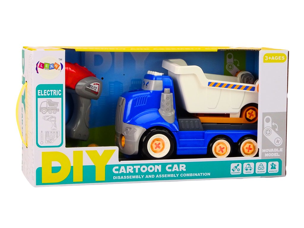 Kreslený nákladiak sklápačka na skrutkovanie DIY Modrý