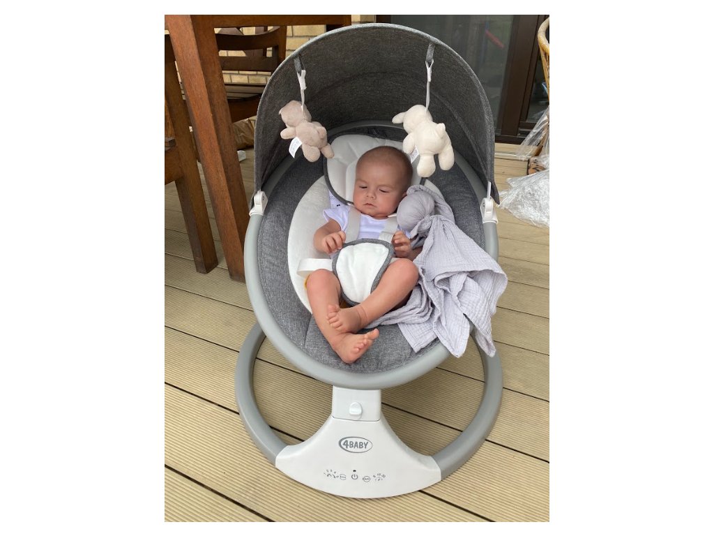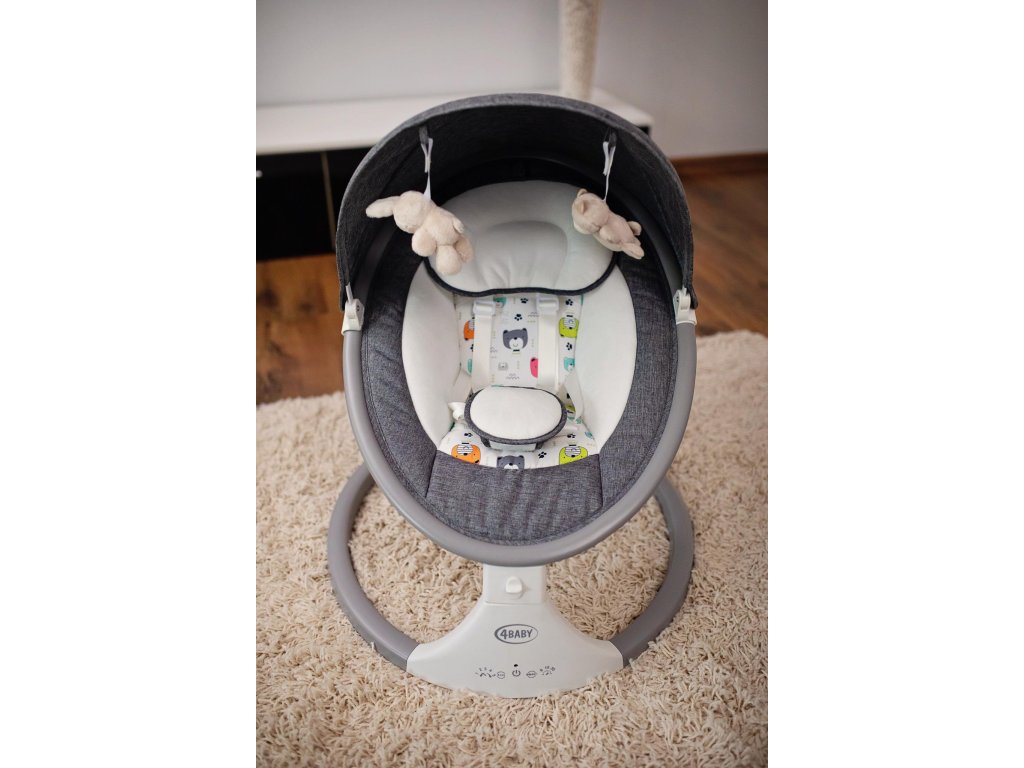 4Baby Rock'n relax je elektrické lehátko pre bábätko , ktoré stimuluje vývoj dieťaťa a umožňuje rodičom na chvíľu si oddýchnuť. Má 5 hojdacích rýchlostí s tichým pohybom, 12 vstavaných melódií s nastaviteľnou hlasitosťou a port USB, ktorý vám umožní hrať obľúbené uspávanky vášho dieťaťa. V sade nájdete plyšové hračky, ktoré určite rozveselia každé dieťa.