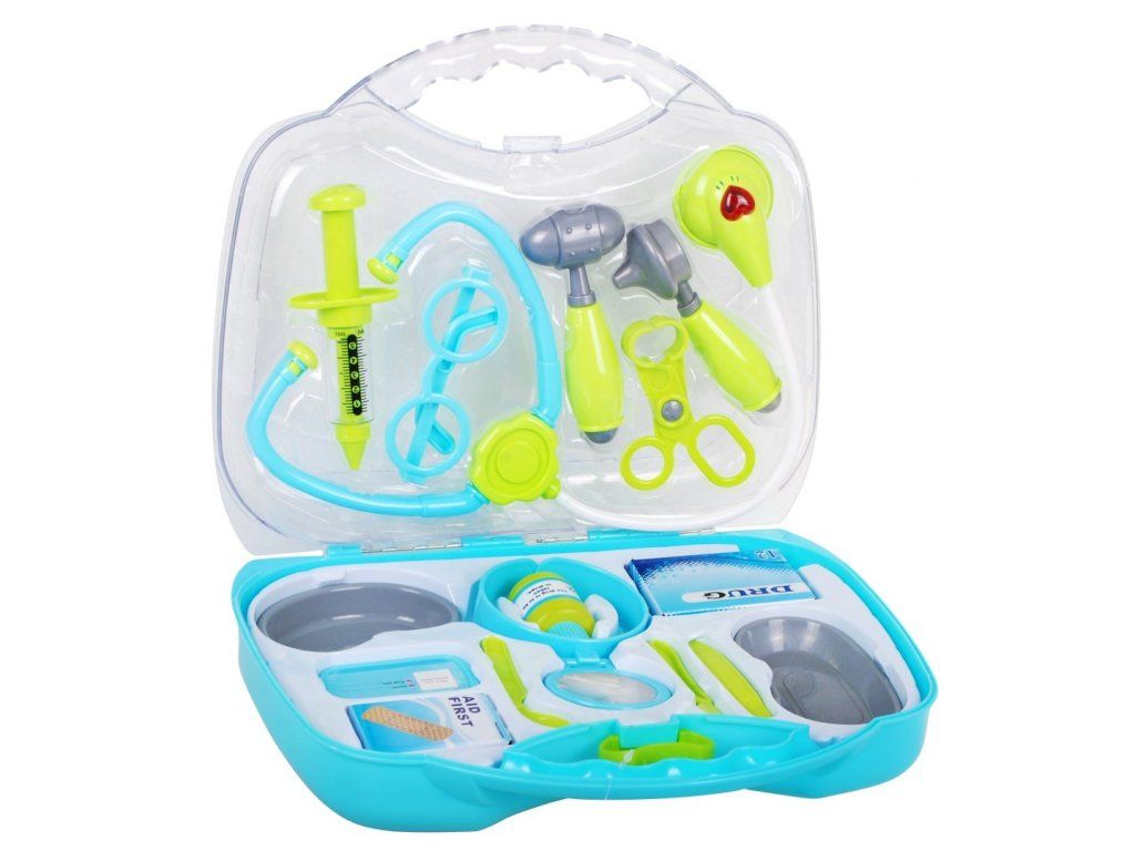 Lekárska sada obsahuje celkom 17 lekárskych pomôcok, ktoré sú umiestnené v praktickom kufríku. V kufríku nájdete bohatú detskú lekársku výbavu, bez ktorej sa nezaobíde žiadny malý lekár. S týmto lekárskym kufríkom majú deti možnosť skontrolovať zdravie svojej rodiny alebo kamarátov.