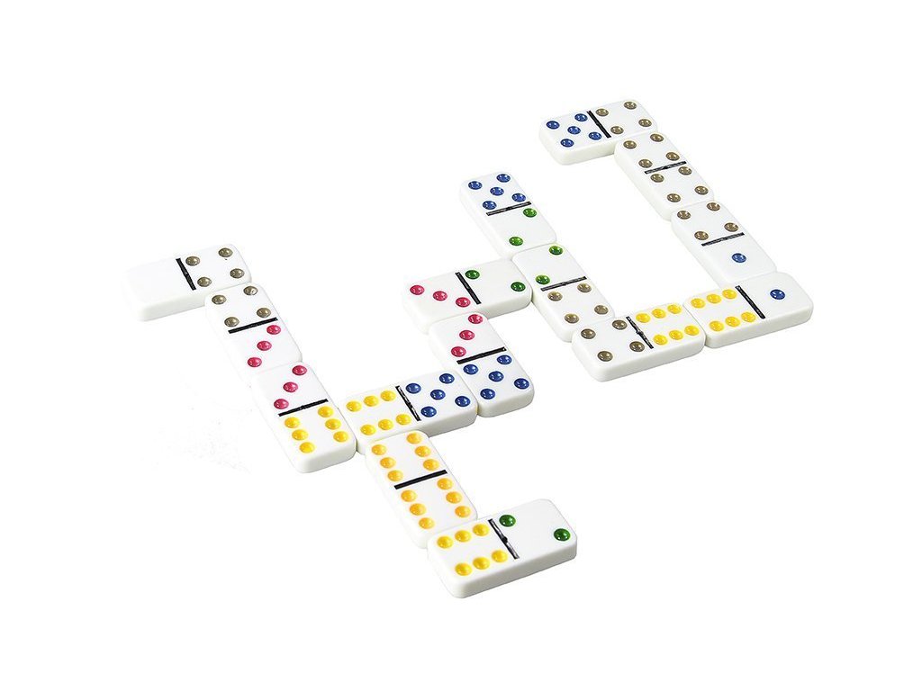 Domino je známa hra, v ktorej sa používajú kocky zvané kamene. Každá z kociek je rozdelená na dva štvorcové políčka s vyznačenými farebnými očkami . Predstavená hra je najobľúbenejšou verziou, skladá sa z 28 kociek , do ktorých patria všetky kombinácie čísel od 0 do 6.