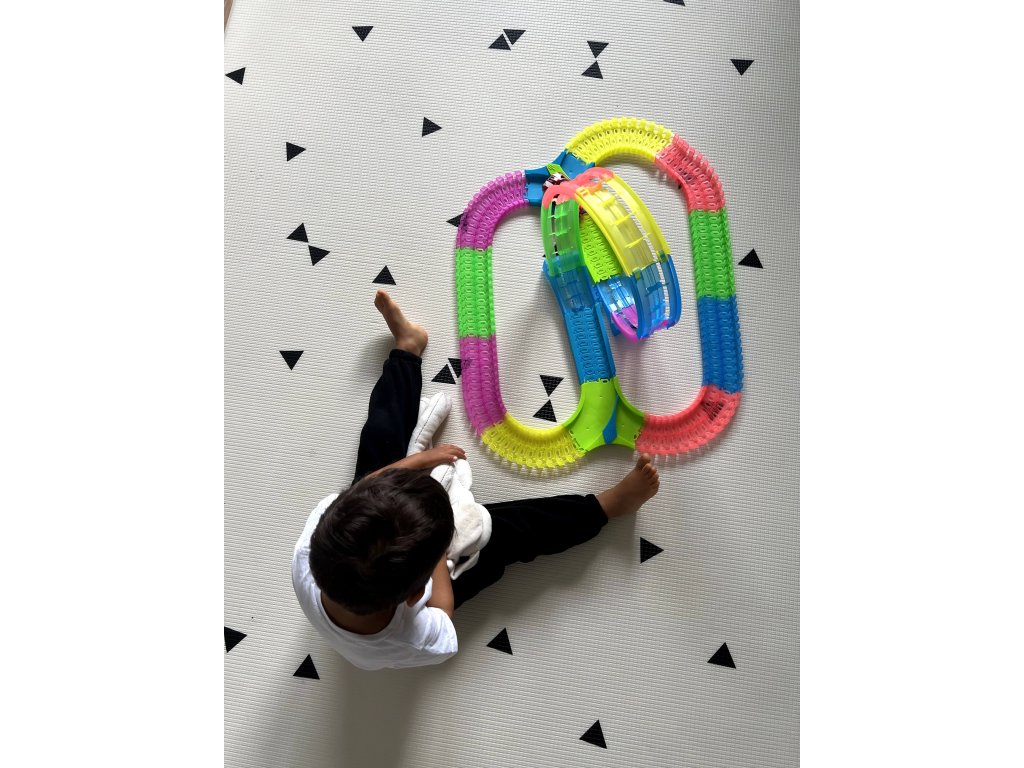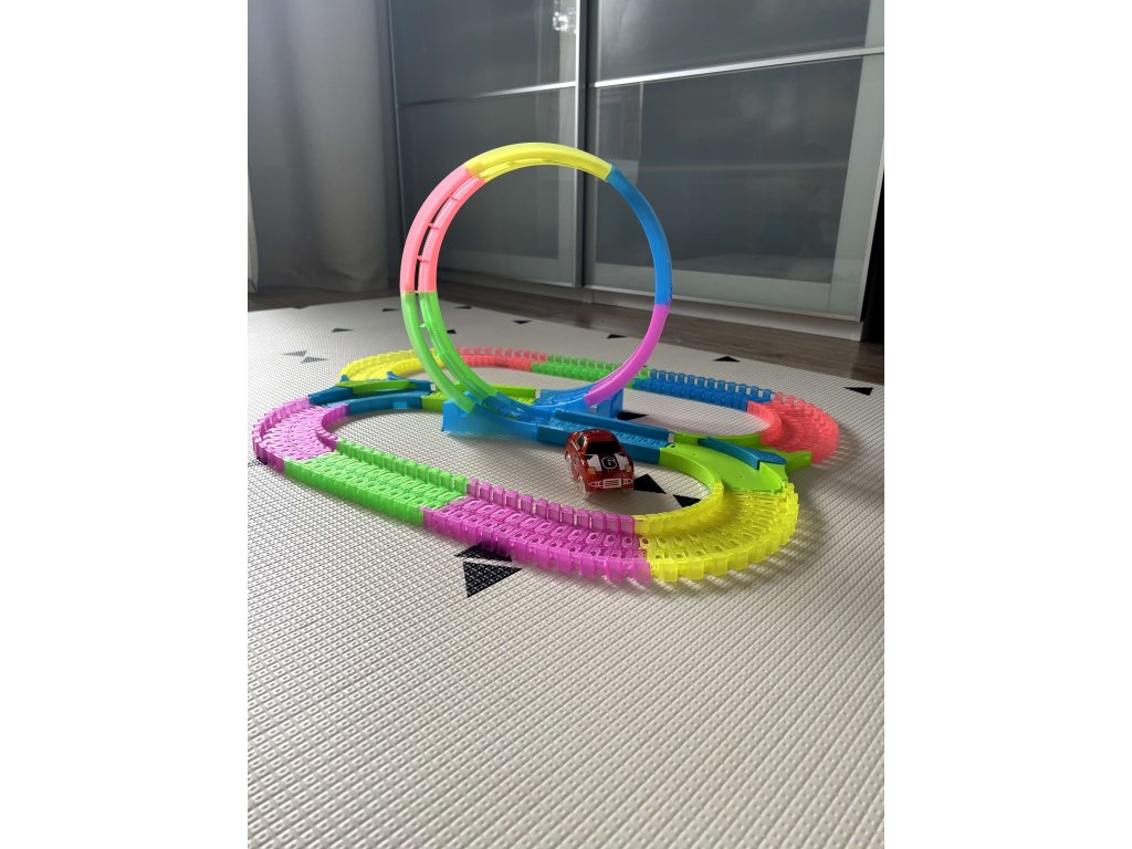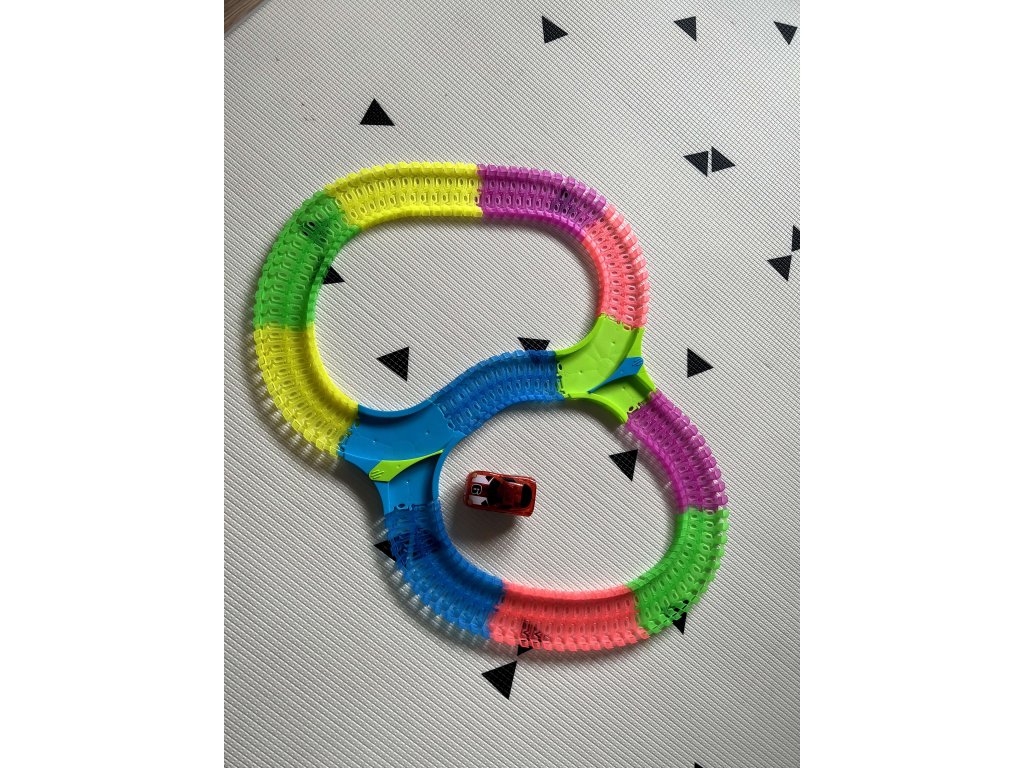 Svietiaca autodráha s autíčkami zaistí každému dieťaťu veľa zábavy. Autodráha , ktorú je možné usporiadať podľa vlastného konceptu a nápadu. Prvky sady sa ľahko zostavujú a rozkladajú, vďaka čomu dieťa nebude mať problém s ich konštrukciou. Autíčko má svetelné efekty.