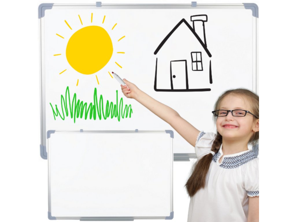 - Univerzálny dizajn: Biely povrch a elegantný rám robia tabuľu vhodnú do akéhokoľvek priestoru – ideálnu do moderných interiérov a kancelárií.