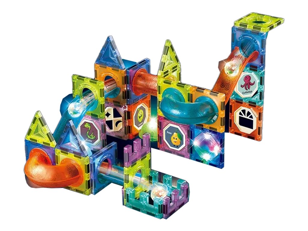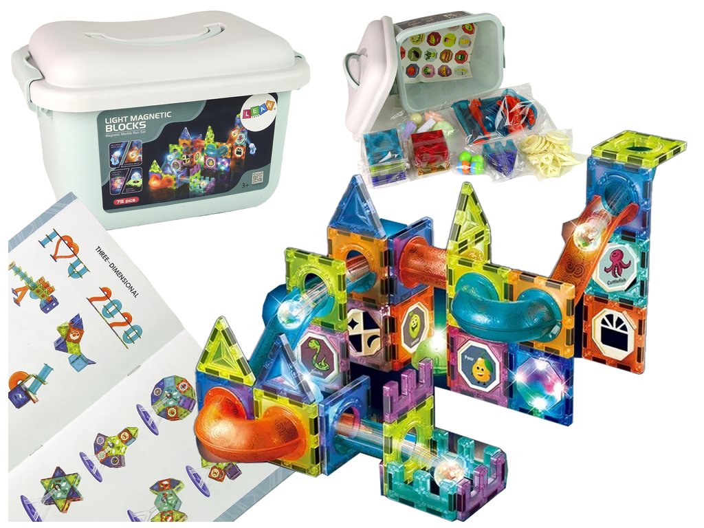 Magnetické kocky sú vynikajúcou vzdelávacou hračkou, rozvíja detskú kreativitu, učia trpezlivosti a sústredeniu. V brožúre, ktorá je súčasťou sady, sú uvedené ukážky dráhy. Niektoré komponenty majú zabudované osvetlenie, aby hračka vyzerala nápadito.