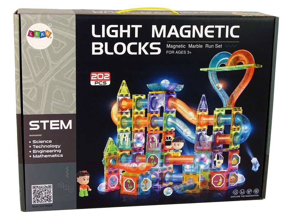 Magnetická svietiaca stavebnica guličková dráha 202 dielov