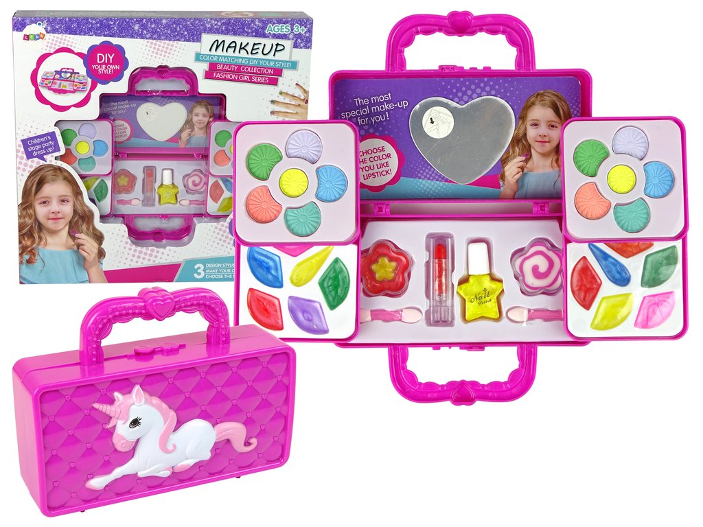Malé dievčatko sa chce cítiť ako jej mamička, v určitom okamihu sa začne zaujímať o vzhľad, líčenie a módu. Teraz môže mať svoju kozmetickú sadu uloženú a usporiadanú v krásnej ružovej kabelke s motívom jednorožca. Taštička s touto rozprávkovou bytosťou doplní dievčin styling, pomôže jej začať dobrodružstvo v líčení, ktoré bude formovať jej manuálnu zručnosť, precíznosť, kreativitu a predstavivosť.