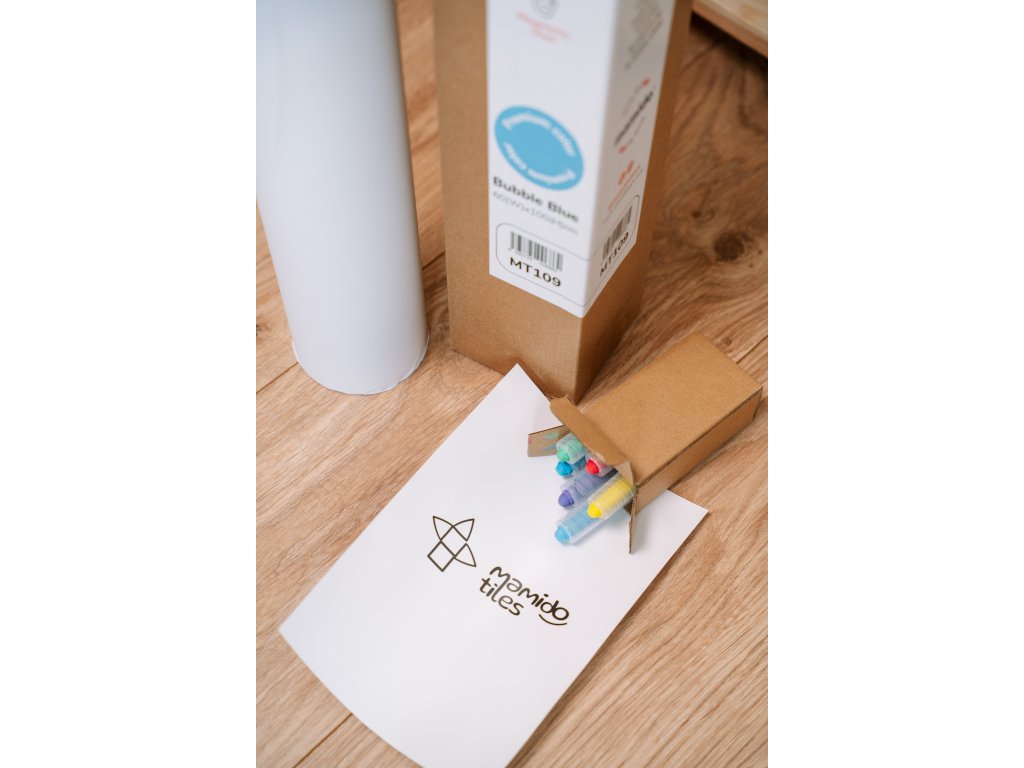Magnetická tapeta Mamido Tiles prinesie deťom ešte viac zábavy, tvorenia a učenia vďaka magnetickej sile a jednoduchej inštalácii. Stačí ju nalepiť na hladkú stenu a v okamihu vznikne interaktívny priestor pre magnetky, kreslenie kriedou, maľovanie umývateľnými farbami aj písanie fixkou na tabuľu.