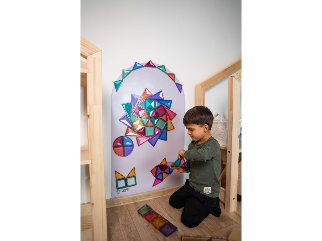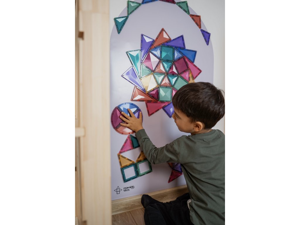 Magnetická tapeta Mamido Tiles prinesie deťom ešte viac zábavy, tvorenia a učenia vďaka magnetickej sile a jednoduchej inštalácii. Stačí ju nalepiť na hladkú stenu a v okamihu vznikne interaktívny priestor pre magnetky, kreslenie kriedou, maľovanie umývateľnými farbami aj písanie fixkou na tabuľu.