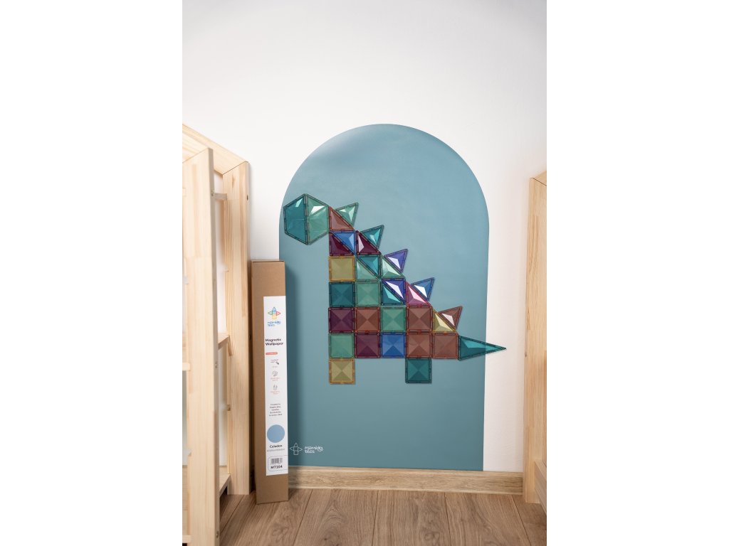 Magnetická tapeta Mamido Tiles prinesie deťom ešte viac zábavy, tvorenia a učenia vďaka magnetickej sile a jednoduchej inštalácii. Stačí ju nalepiť na hladkú stenu a v okamihu vznikne interaktívny priestor pre magnetky, kreslenie kriedou, maľovanie umývateľnými farbami aj písanie fixkou na tabuľu.