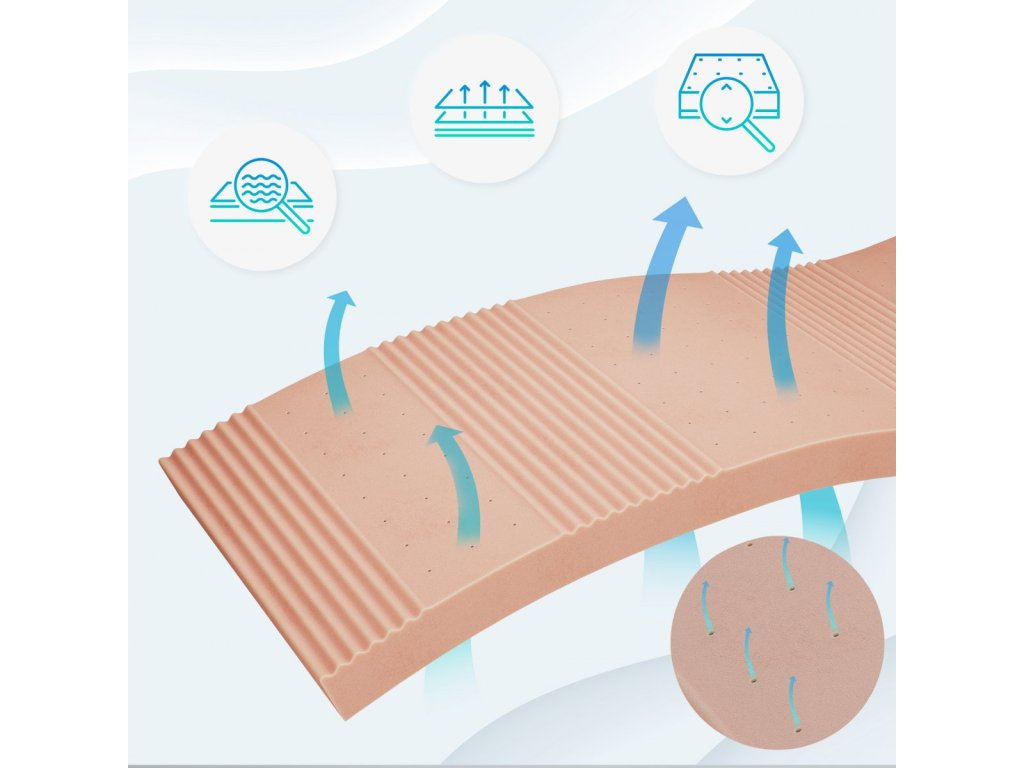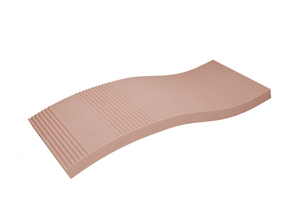 Použitá pružná pena bola na jednej strane jemne profilovaná po zónach, čo zaisťuje lepšie prispôsobenie a podporu tela.