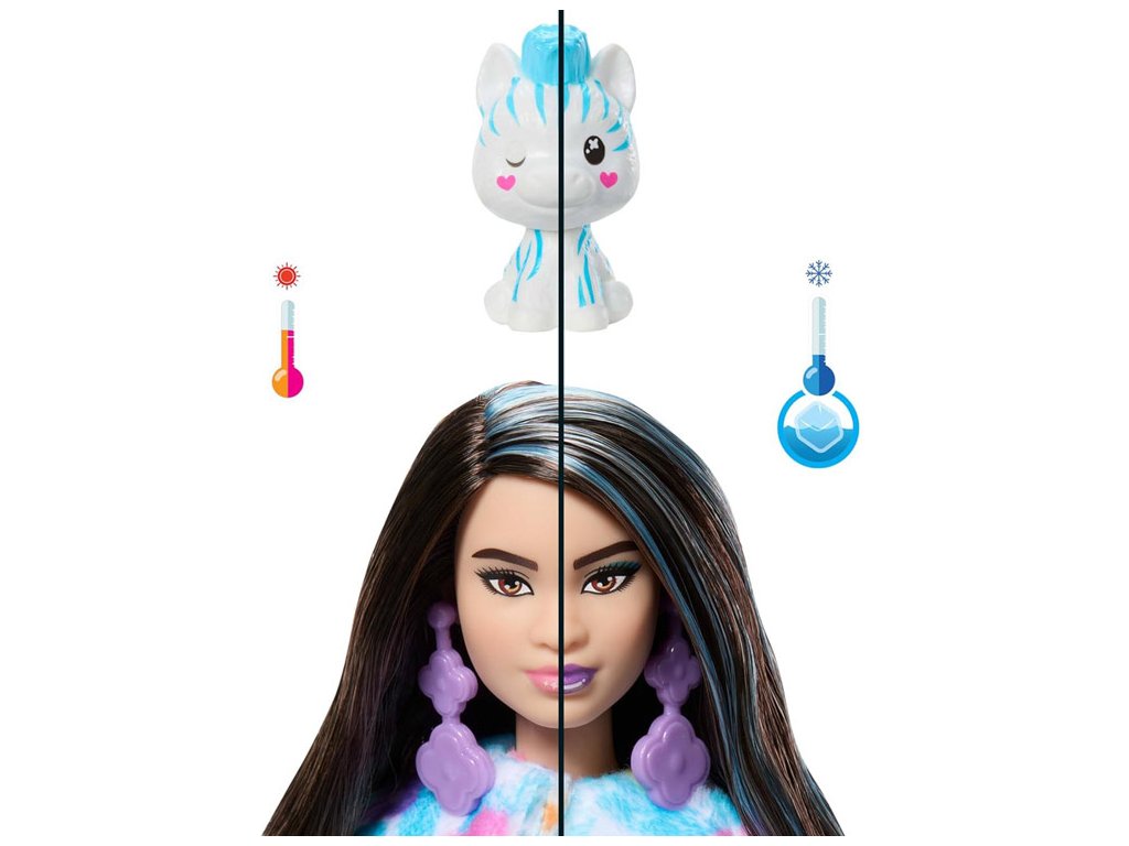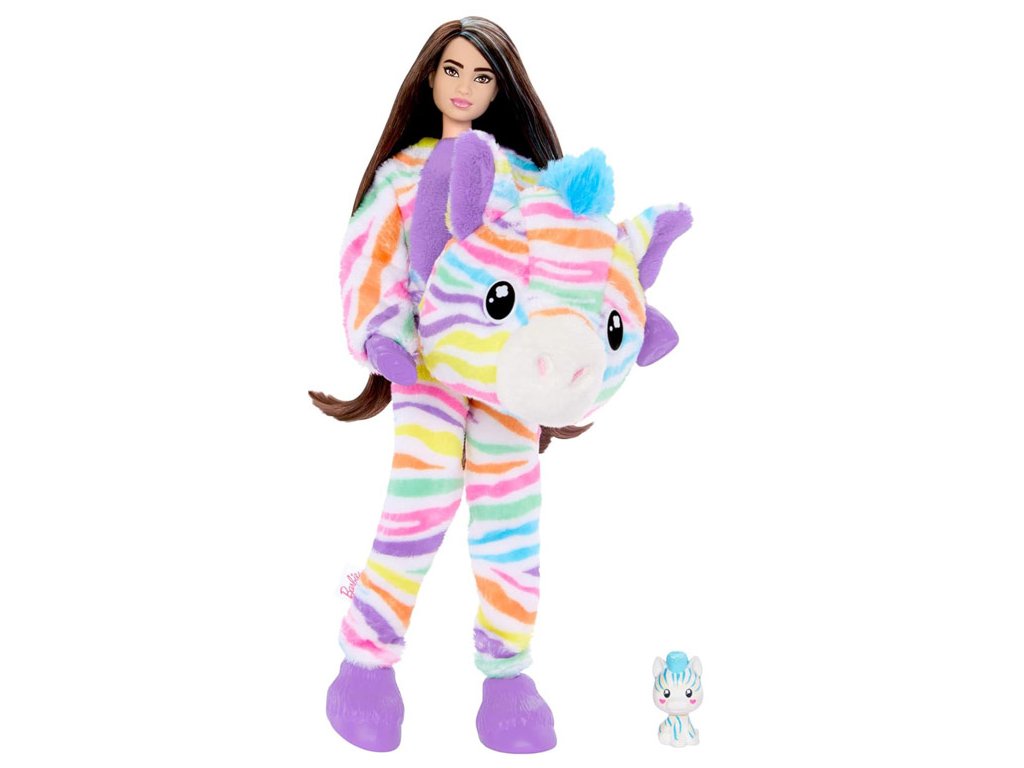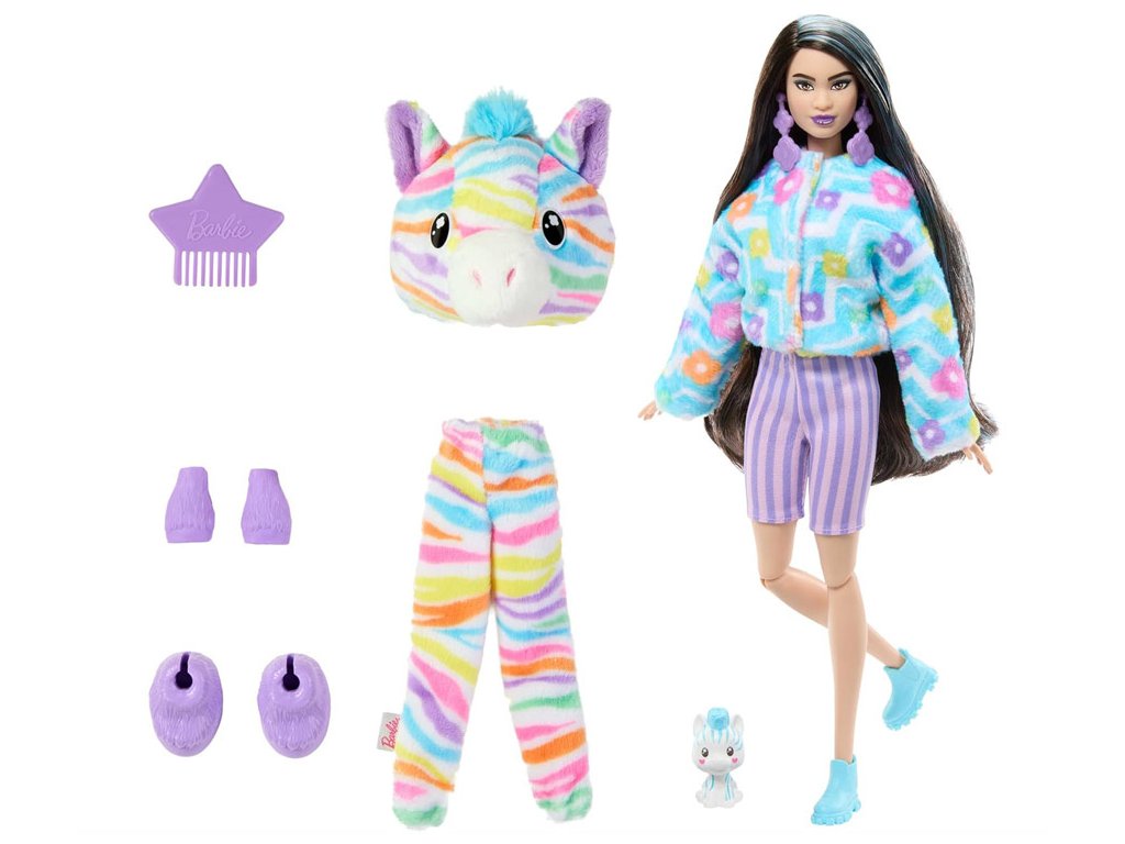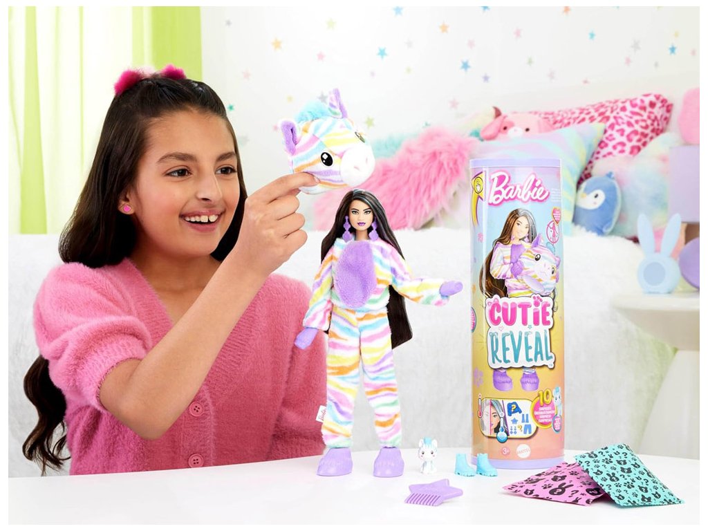 Ponorte sa do sveta prekvapení, štýlu a kreatívnej zábavy s jedinečnou bábikou Barbie® Cutie Reveal Zebra. Táto séria prekvapuje nielen svojím jedinečným vzhľadom, ale aj skrytými doplnkami, ktoré môžete objavovať a používať v nových a nových štylizáciách. Bábika je oblečená do mäkkého plyšového kostýmu roztomilej dúhovej zebry – a to je len začiatok zábavy.