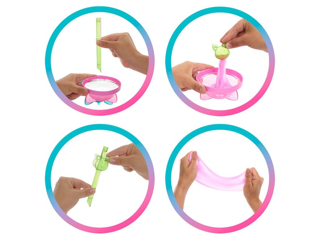 Súprava skrýva až 8 prvkov na objavovanie, ktoré uvedú dieťa do sladkého sveta vôní, farieb a roztomilých detailov. Balenie vo forme téglika má priehľadné viečko s mačacími ušami – po jeho odňatí deti nájdu lesklý sliz, mäkký a tvárny, ktorý poskytuje veľa radosti z hrania dotykom.