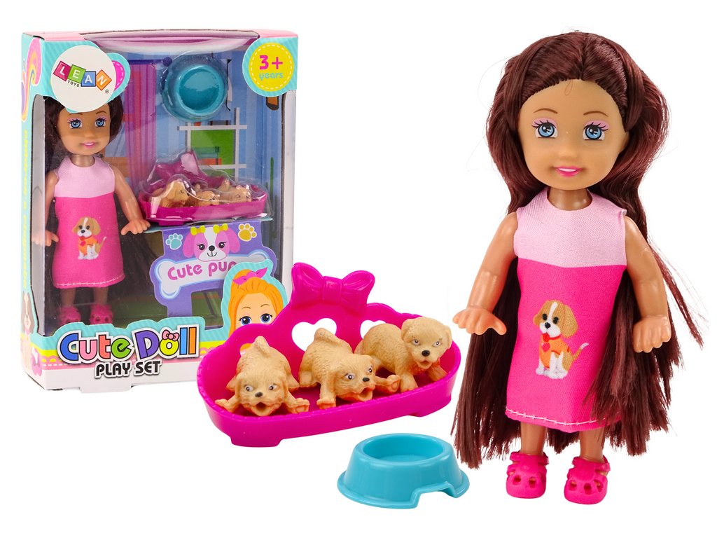 Malá bábika s tromi psíkmi v pelechu je roztomilá a kompaktná hračka, ideálna pre dievčatká, ktoré milujú bábiky a zvieratká. Bábika je oblečená vo farebných, starostlivo vyrobených šatách a jej dlhé, hnedé vlasy je možné česať a štylizovať podľa vlastných predstáv. Spoločnosť jej robia traja malí psíci v pelechu, ktorí pridávajú ešte viac radosti do hry.