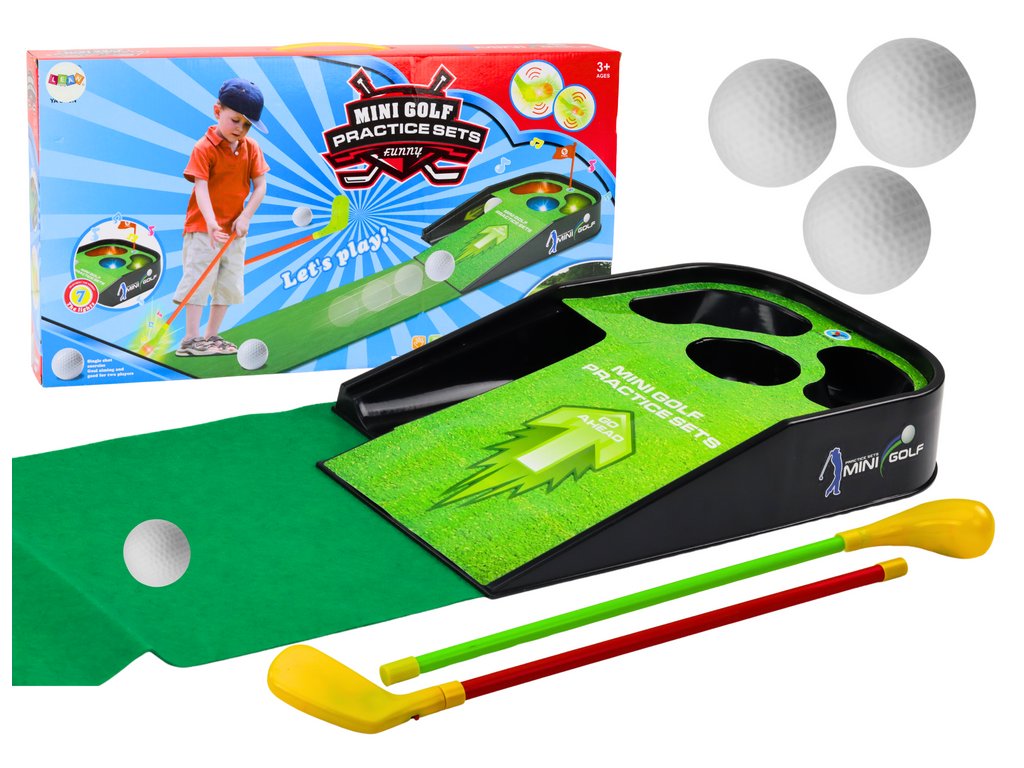 Realistickosť a autentickosť hre dodáva dlhý zelený koberec imitujúci trávu. Deti sa môžu cítiť ako skutoční golfisti a užívať si každý úder loptičky.
