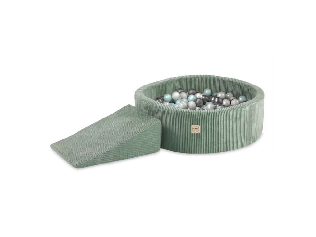 Mini ihrisko s bazénom Ø 90 × 30 cm s herným prvkom (trojuholník) a 200 loptičkami zelenej