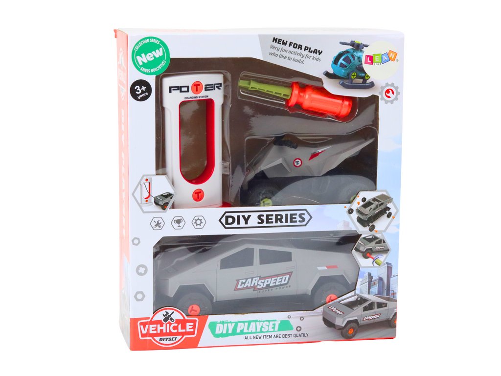 Montážne autíčko so štvorkolkou a nabíjaciu stanicu šedej