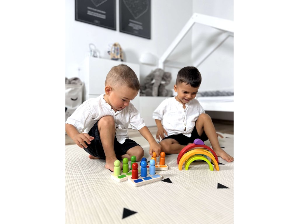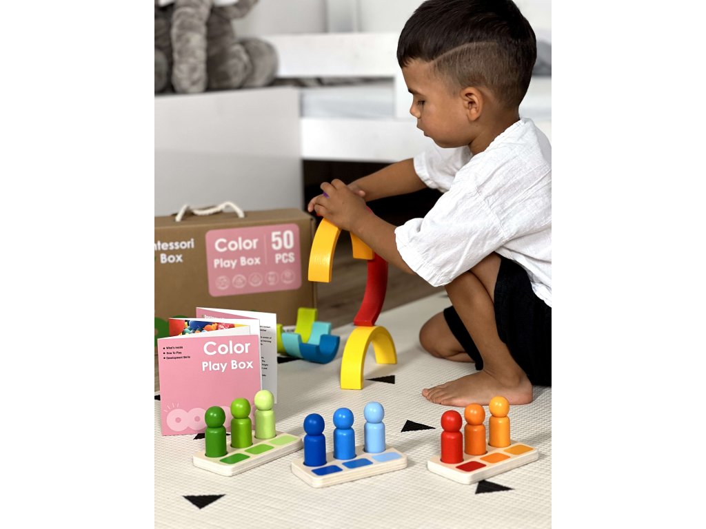Podporte detský vývoj s Montessori Boxom na rozpoznávanie farieb , určeným pre deti vo veku 25-30 mesiacov. Tento box obsahuje 50 starostlivo vybraných hračiek, ktoré pomáhajú deťom naučiť sa rozpoznávať farby a podporujú ich jemnú motoriku a logické myslenie. Súčasťou sady sú farebné stohovacie hračky, senzorické karty a interaktívne knihy, všetky vyrobené z bezpečných a ekologických materiálov šetrných k detskej pokožke.