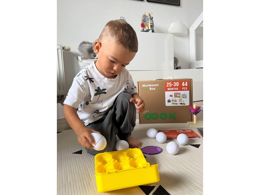 Objavte Montessori Edukačný box pre deti od 25 do 30 mesiacov, navrhnutý pre rozvoj jemnej motoriky a základných zručností. Tento box obsahuje 44 dielov rôznych hračiek, vrátane farebných stohovacích hračiek, geometrických tvarov a interaktívnych kníh. Všetky hračky sú vyrobené z bezpečných, ekologických materiálov, ktoré sú odolné a šetrné k detskej pokožke.
