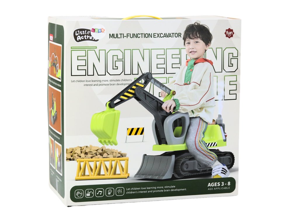 Multifunkčné odrážadlo bager s prívesom, svetlá, zvuky, dym zelená