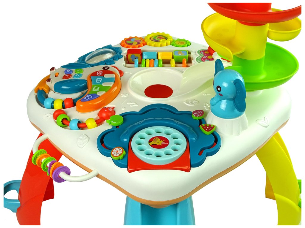 Prvky, ktoré možno stlačiť, určite zaujmú každé dieťa. Stolček s guličkovou dráhou navyše naučí dieťa, ako uchopovať a rozpoznávať zvuky. Detský funkčný dizajn hračky urobí z tohto prvku ozdobu izbičke každého batoľaťa. Dieťa potom spoznáva okolitý svet, rozvíja svoje motorické a manuálne zručnosti, sluch a schopnosť porozumieť svetu, tvarom a farbám.