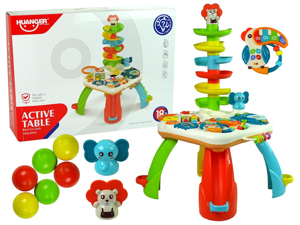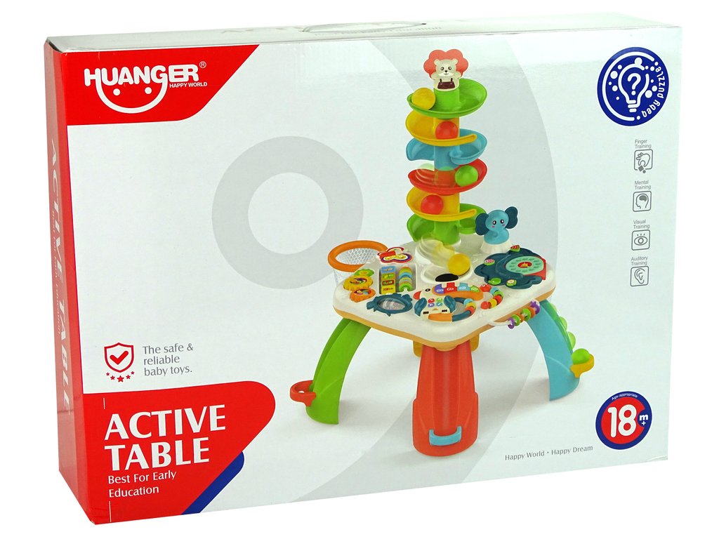 Multifunkčný stolček s guličkovou dráhou je určený pre deti od 18 mesiacov. Hračka je zabalená vo veľkej farebnej krabičke, takže je ideálny ako darček.