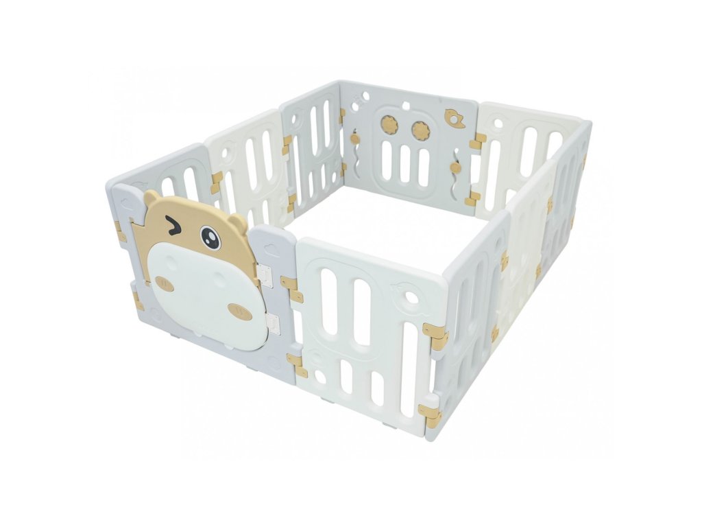 Veľká a bezpečná detská ohrádka Hipcio ponúka ideálny priestor na hranie detí od 6 mesiacov. Vďaka variabilnému systému ju je možné zostaviť do ľubovoľného tvaru podľa potreby. Konštrukcia je stabilná, má hladké hrany a protišmykové nôžky. Vnútri ohrádky nájdete zábavné herné prvky ako otáčací volant, píšťalku, kolieska alebo zubatky, ktoré podporujú zmyslový rozvoj aj motoriku. Súčasťou balenia je aj kôš a 40 plastových loptičiek. Bezpečnostný zámok dverí je umiestnený z vonkajšej strany, aby ho dieťa nemohlo samo odomknúť.