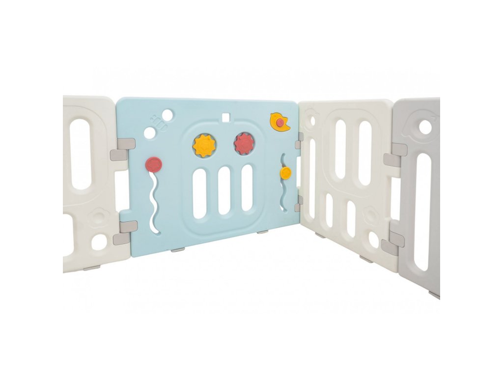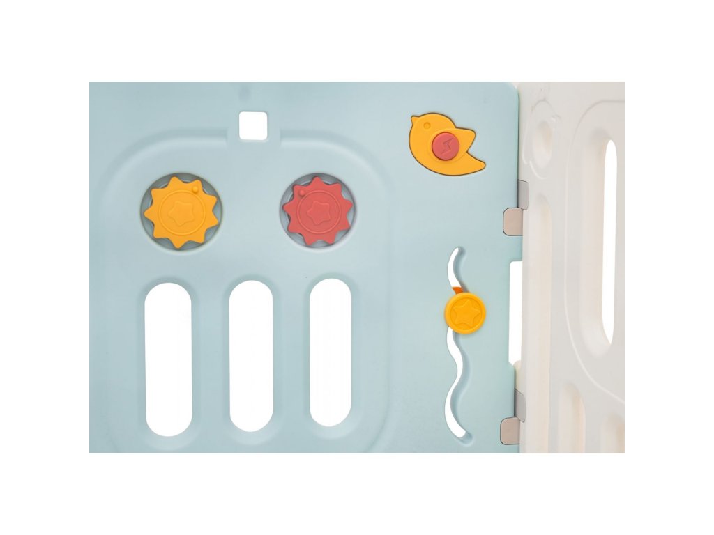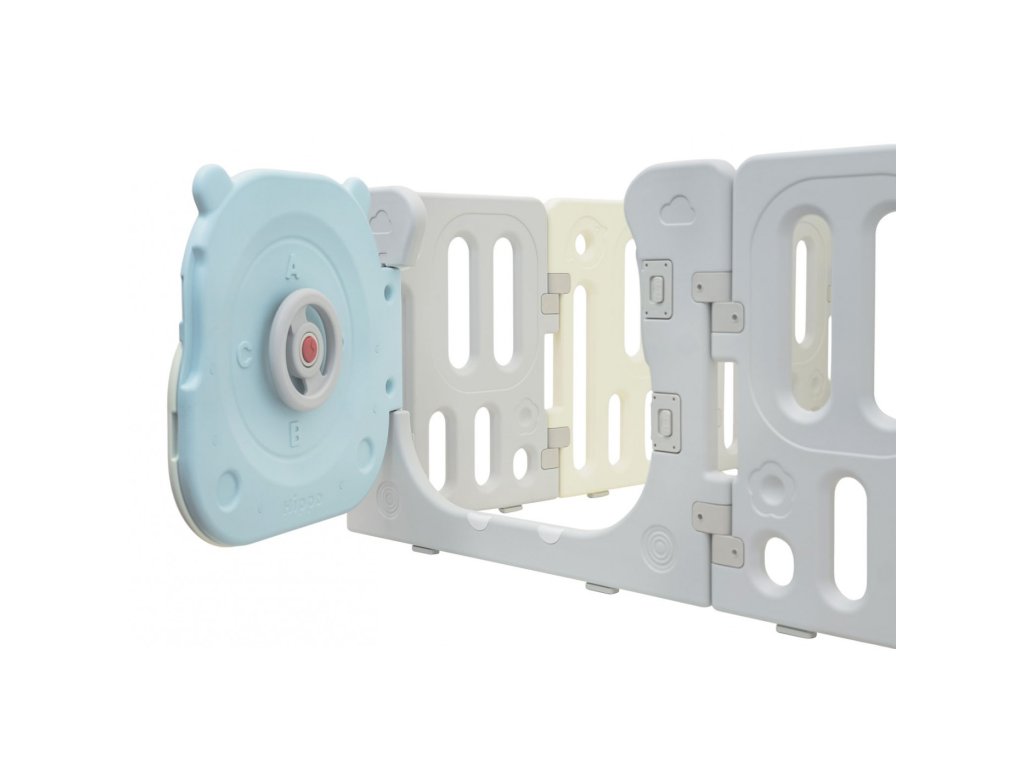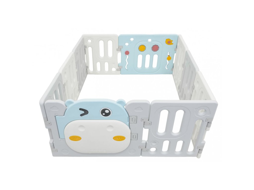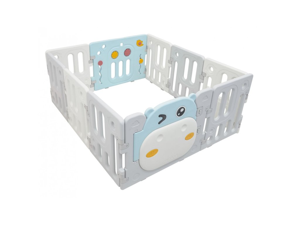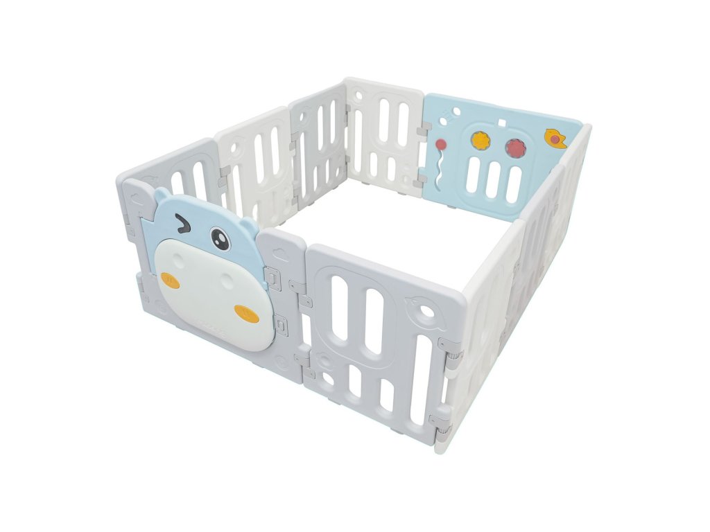 Veľká a bezpečná detská ohrádka Hipcio ponúka ideálny priestor na hranie detí od 6 mesiacov. Vďaka variabilnému systému ju je možné zostaviť do ľubovoľného tvaru podľa potreby. Konštrukcia je stabilná, má hladké hrany a protišmykové nôžky. Vnútri ohrádky nájdete zábavné herné prvky ako otáčací volant, píšťalku, kolieska alebo zubatky, ktoré podporujú zmyslový rozvoj aj motoriku. Súčasťou balenia je aj kôš a 40 plastových loptičiek. Bezpečnostný zámok dverí je umiestnený z vonkajšej strany, aby ho dieťa nemohlo samo odomknúť.