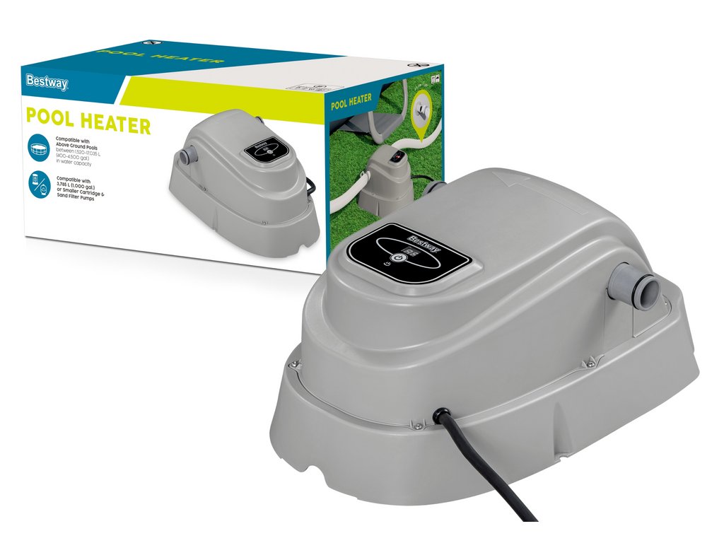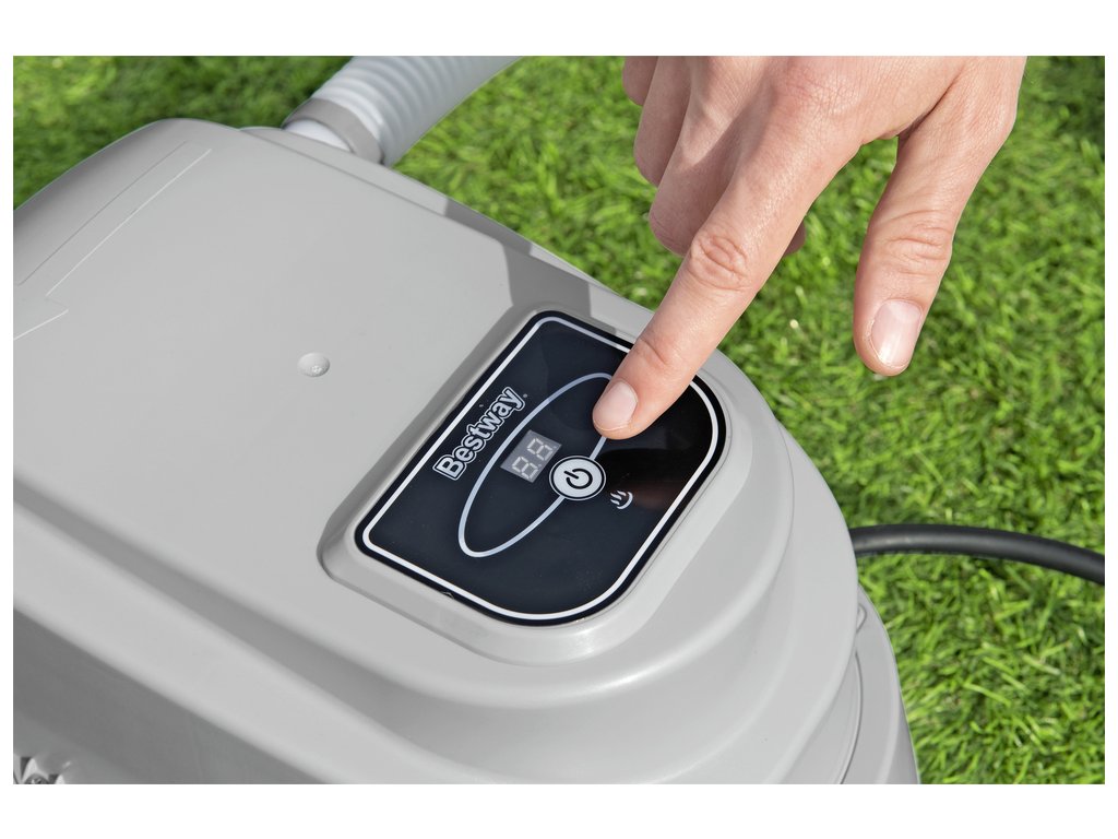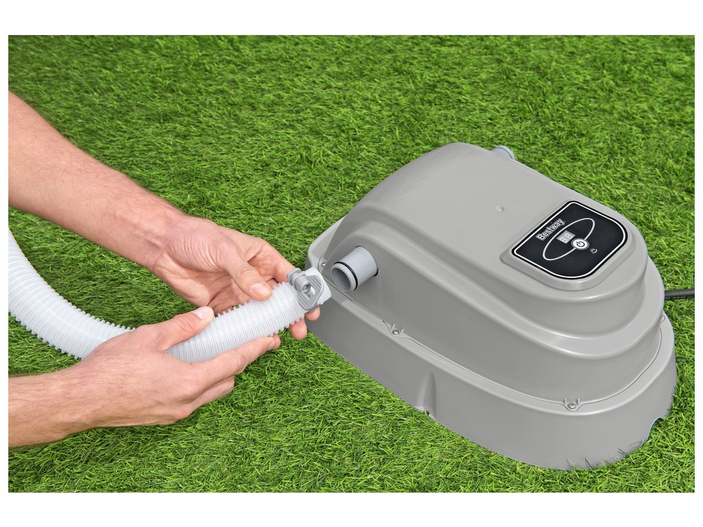 Unavuje vás studená voda vo vašom bazéne? Ak by ste ju radšej mali teplejšiu, kúpte si ohrievací systém, a nebudete si už musieť robiť starosti s tým, že voda nebude dostatočne teplá na letné kúpanie. Toto zariadenie je veľmi jednoduché na inštaláciu a dokáže ohriať vodu až o 40 stupňov. Na fungovanie vyžaduje tiež filtračné čerpadlo, ktoré umožní prietok vody. Prezentovaný model sa osvedčí v bazénoch s priemerom do 457 cm. Rýchlosť ohrevu vody závisí od faktorov, ako je počiatočná teplota vody.