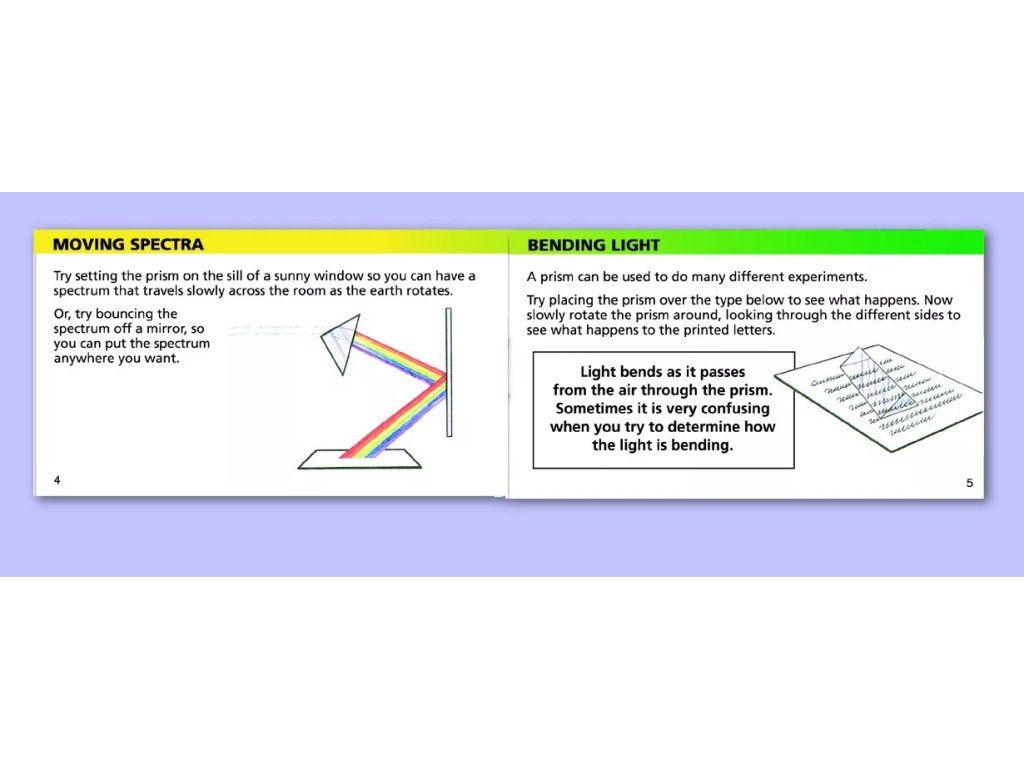 Objavuj zákony optiky pomocou hranola, ktorý rozloží biele svetlo do odtieňov dúhy.