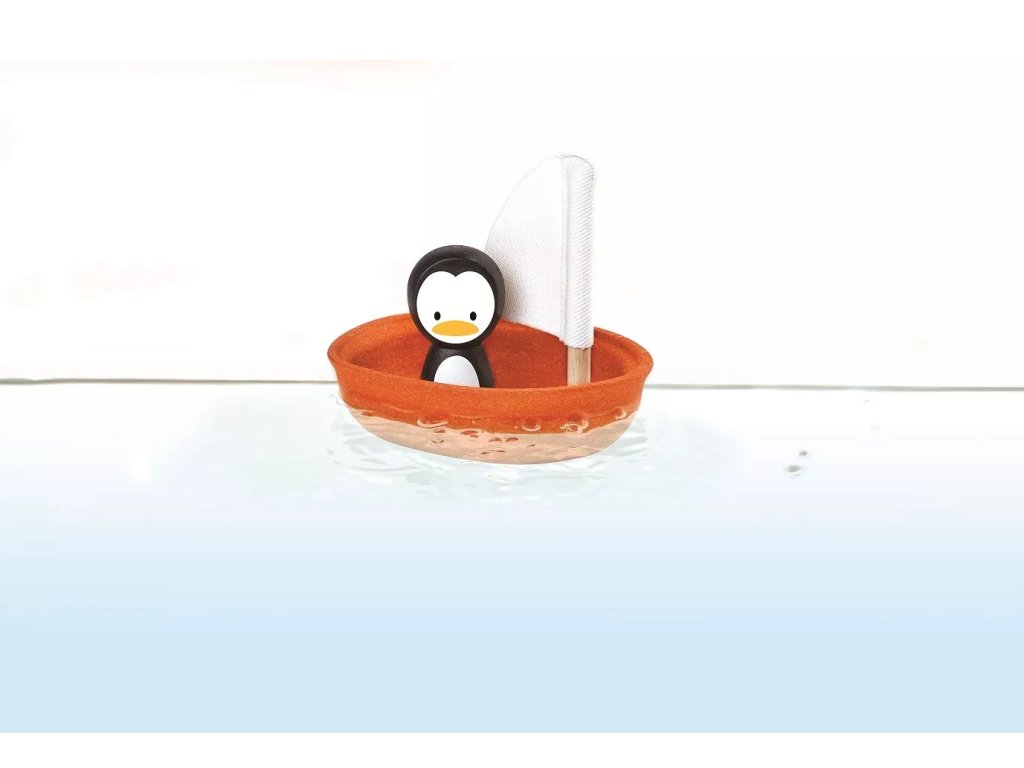 Malá plachetnička, ktorá vyzerá, ako by práve odplávala zo severného pólu. Súčasťou sady je aj tučniak.