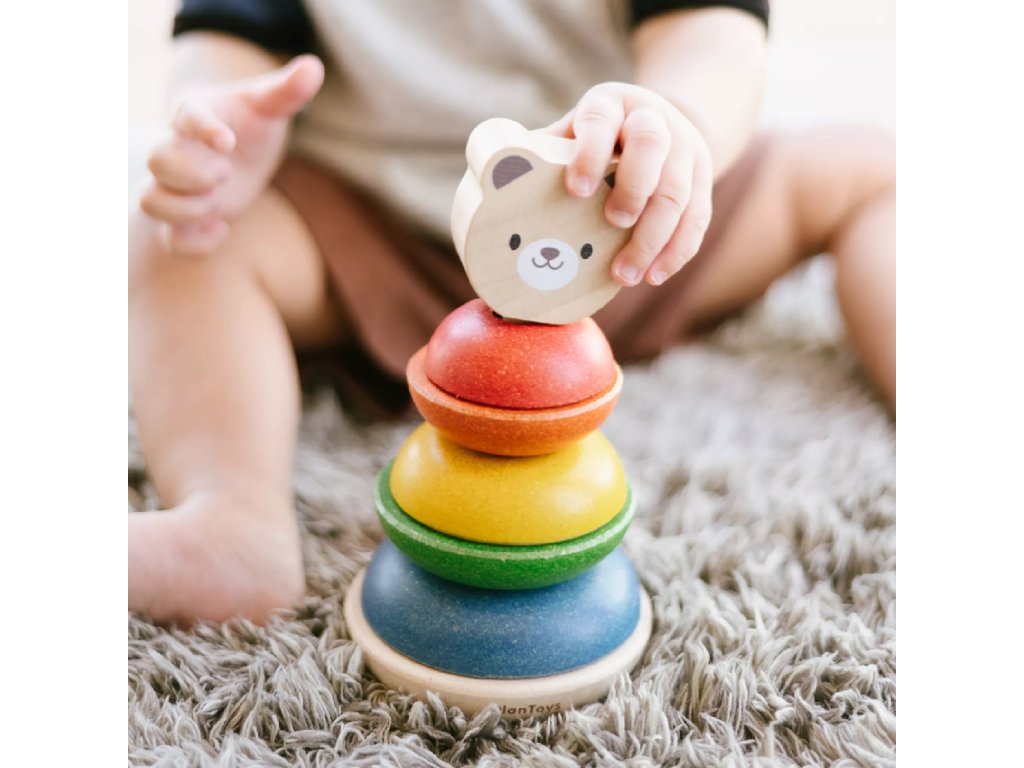 Kaučuková stohovacia hračka Stohovanie – medveď od značky PlanToys rozvíja jemnú motoriku, koordináciu oko-ruka a logické myslenie hravou formou.