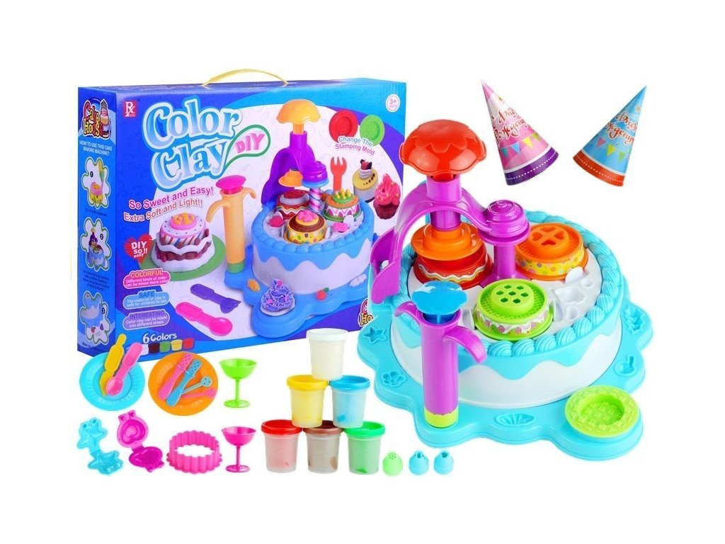 Detská plastelína - narodeninovú tortu s príslušenstvom je skvelý darček pre všetky deti, ktoré milujú oslavy narodenín. Hračka rozvíja u detí kreativitu, manuálne zručnosti a pomáha rozvoju koordinácie ruka-oko. Sada obsahuje šesť tégliku s plastelínou v rôznych farbách - biela, žltá, modrá, zelená, hnedá a červená.