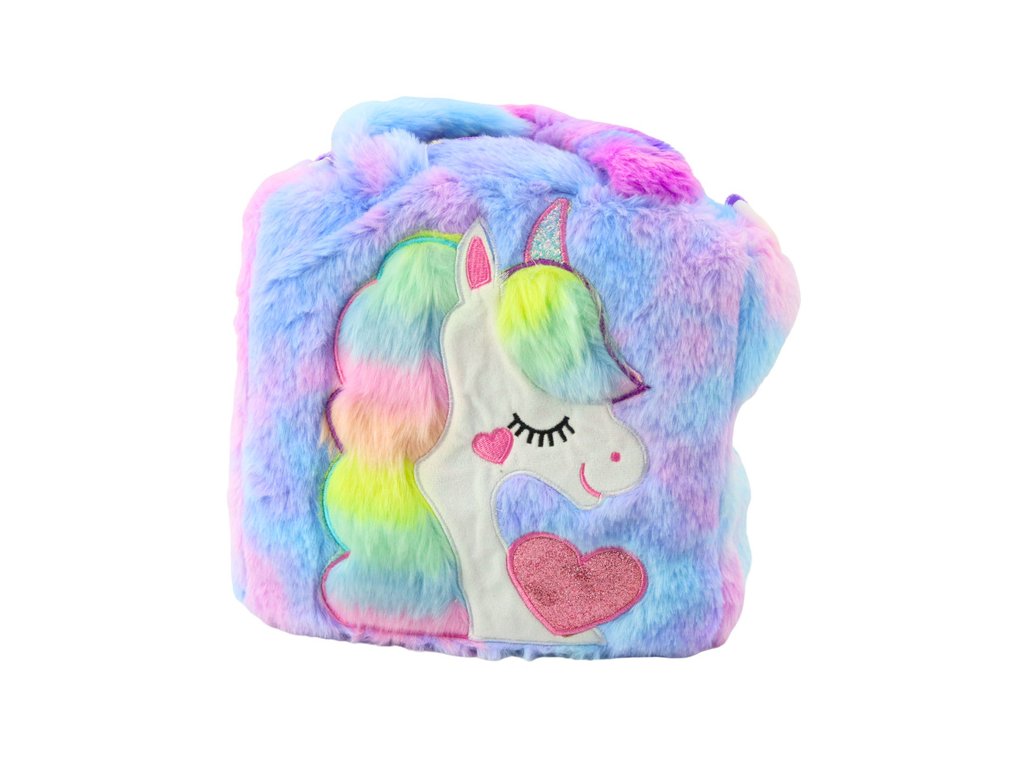 Rozkošná kabelka s motívom jednorožca je dokonalým doplnkom pre všetky malé milovníčky rozprávkových doplnkov. Je vyrobená z mäkkého a nadýchaného plyšu a poteší farebným dizajnom, trblietavými detailmi a vyšitým obrázkom jednorožca so srdcom. Taška je ideálna na uloženie malých pokladov, hračiek alebo desiaty počas prechádzok a výletov.
